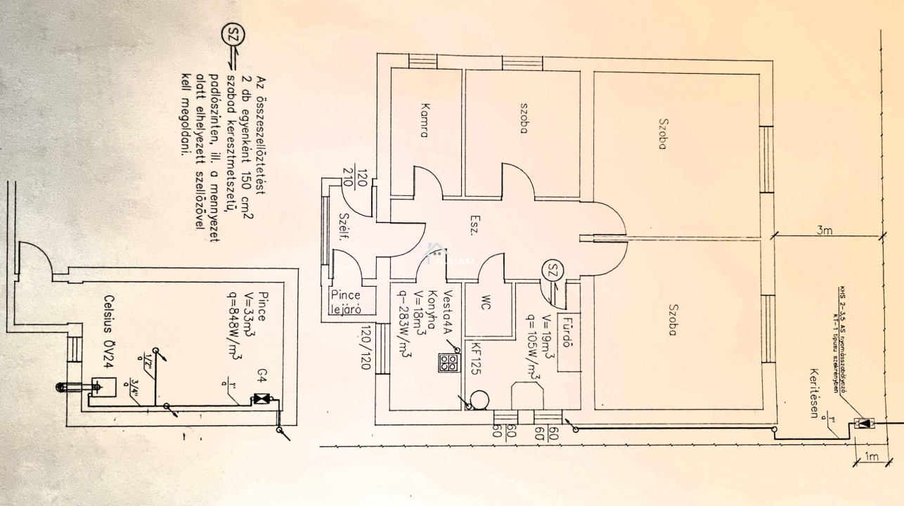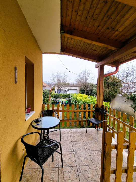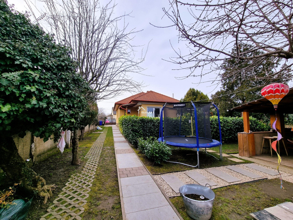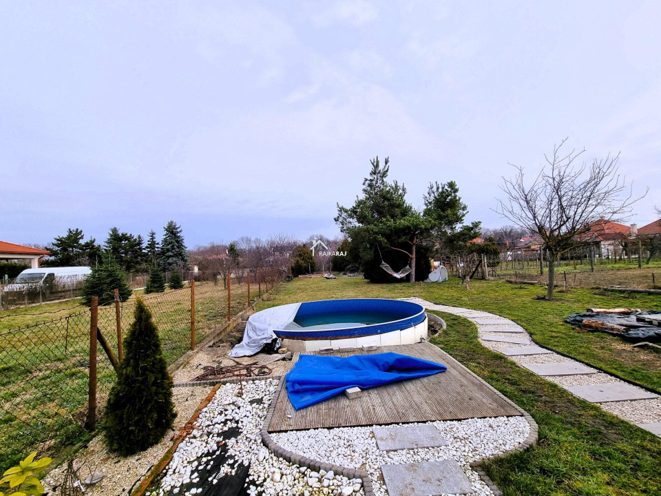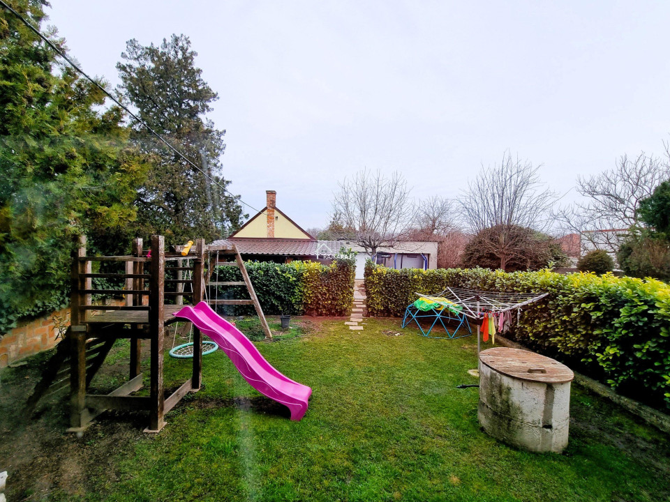 A nyílászárókat szintén cserélték, az ablakok redőnyökkel és szúnyoghálókkal felszereltek. A fűtés gázfűtés radiátoros hőleadással. A ház alatt 50 m2-es pince nyílik. Az udvar szinte két részre oszlik. Az első területen a lakóházzal, udvarral, játszótérrel, fedett kiülővel és melléképülettel, dupla garázs betonalappal, térkövezett területen. A kert hátsó része füvesített, területén medencével és konyhakerttel. Az udvar öntözését kút biztosítja. Remek lehetőség vidékies életre vágyó családok számára!