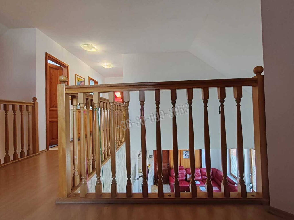 A tágas nappalihoz egy galéria kapcsolódik, ahonnan látványos kilátás nyílik a nappali térre – impozáns belmagasság és kellemes, világos térérzet jellemzi ezt a részt.