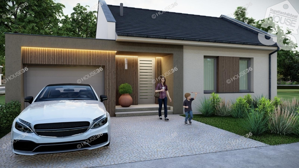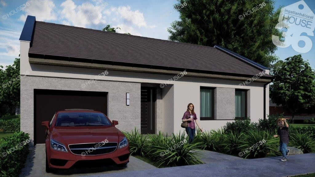 Kiváló elhelyezkedésű, új építésű környéken kínáljuk ezt a90 m2-es, Nappali + 3 szobás prémium kategóriás családi házat, önálló 400 m2-es telken fedett beállóval.