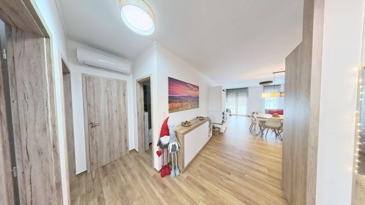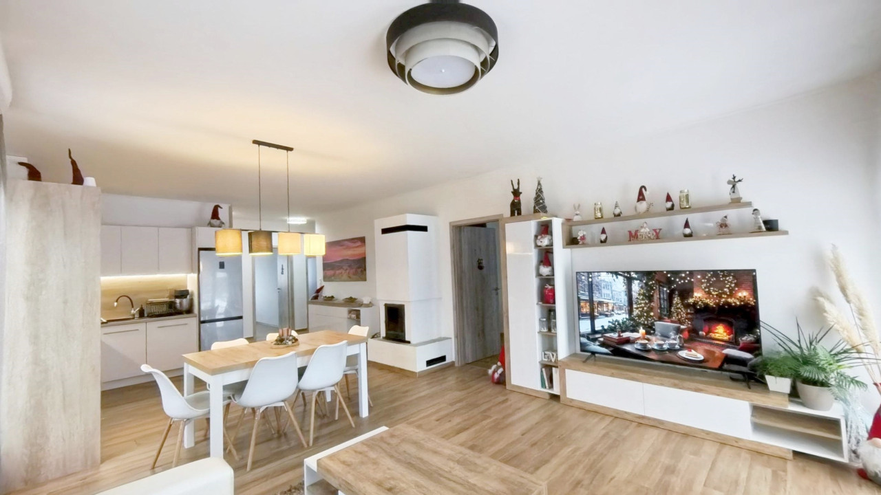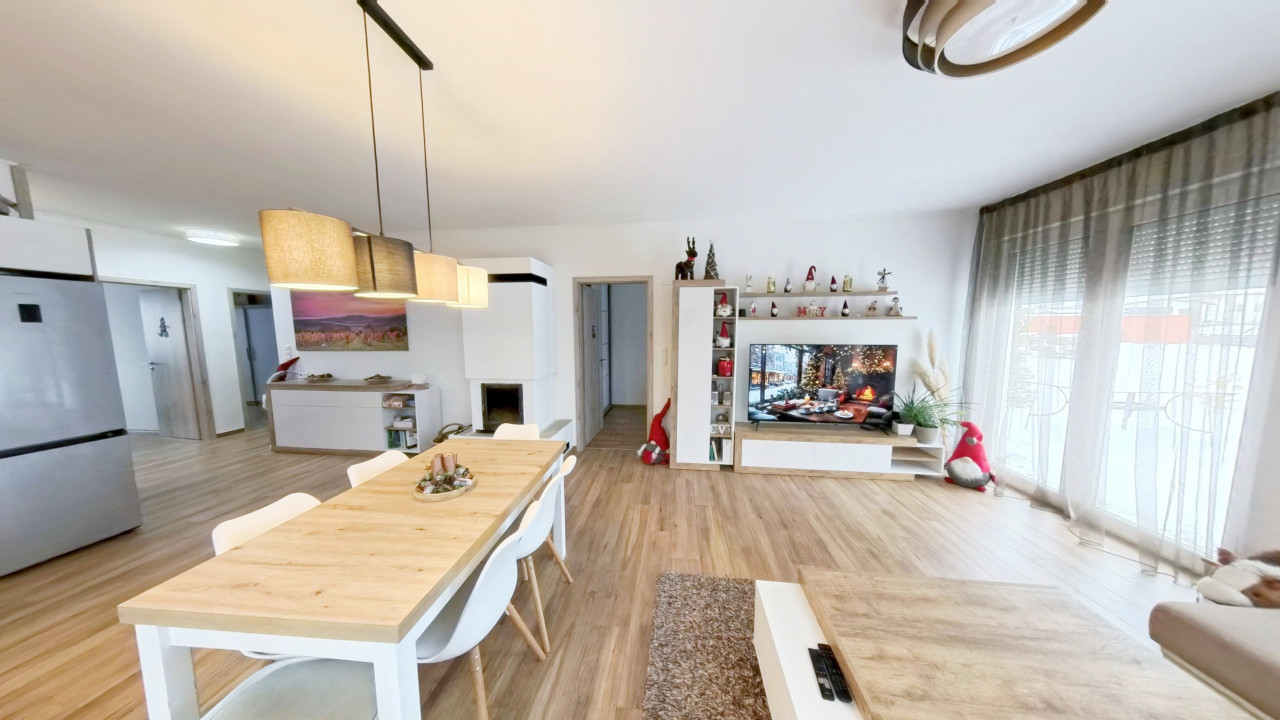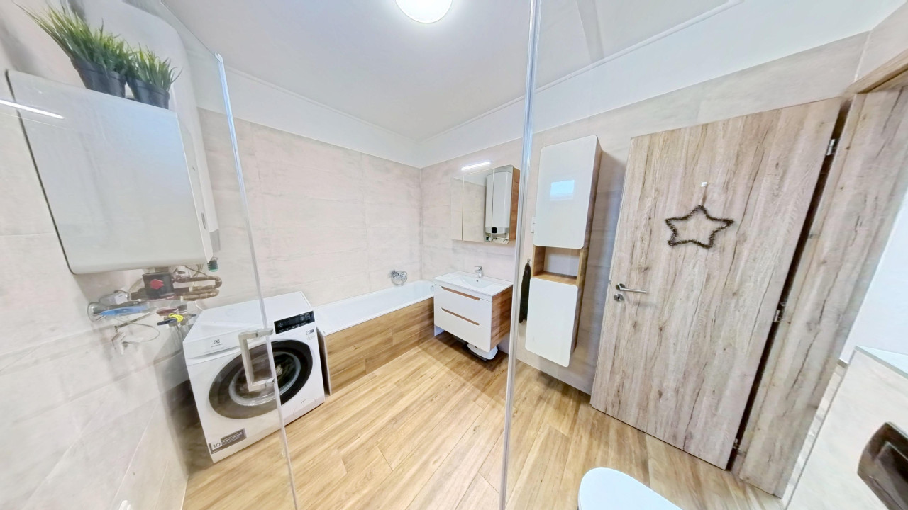 A fürdőszobában kapott helyet a BOSCH ELEKTROMOS KAZÁN és az ARISTON okos villanybojler is. A bejárattól jobbra a konyha-étkezőbe juthatunk, amely egy légtérben van a nappalival. A konyhában EGYEDI TERVEZÉSŰ, IGÉNYESEN BEÉPÍTETT, MODERN KONYHABÚTOR van, melyben minden fontos konyhai gép (Elektrolux sütő és indukciós főzőlap, Bosch mosogatógép, szag elszívó) beépítésre került.
