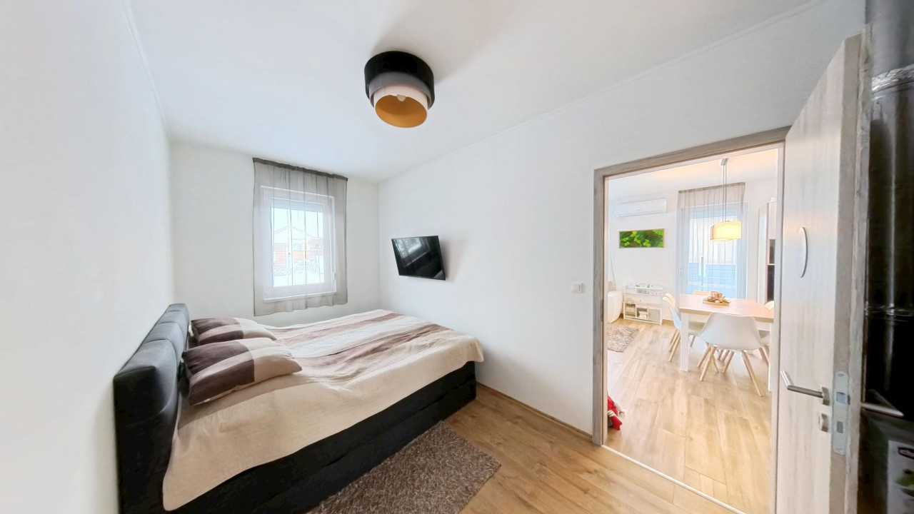 Két HŰTŐ-FŰTŐ KLÍMA is beszerelésre került, hogy még komfortosabb életet biztosítson a bent élők számára. Az elektromos kazán és a két klíma egyaránt KEDVEZMÉNYES „H” TARIFÁRÓL működik. Ennek köszönhetően ez télen mindössze 15 000,- forintba kerül. Az elektromos hálózat 3x20 A. A nyílászárók 3 rétegű üvegezésűek, mindegyiken REDŐNY ÉS SZÚNYOGHÁLÓ is van. A redőnyök elektromos és kézi működtetésűek vegyesen. A ház mellett TÉRKÖVEZETT AUTÓBEÁLLÓ van több autó számára. A közelben óvoda, bölcsőde, iskola, játszótér, boltok, gyógyszertár, orvosi rendelők, buszmegálló pár perces sétára elérhető.