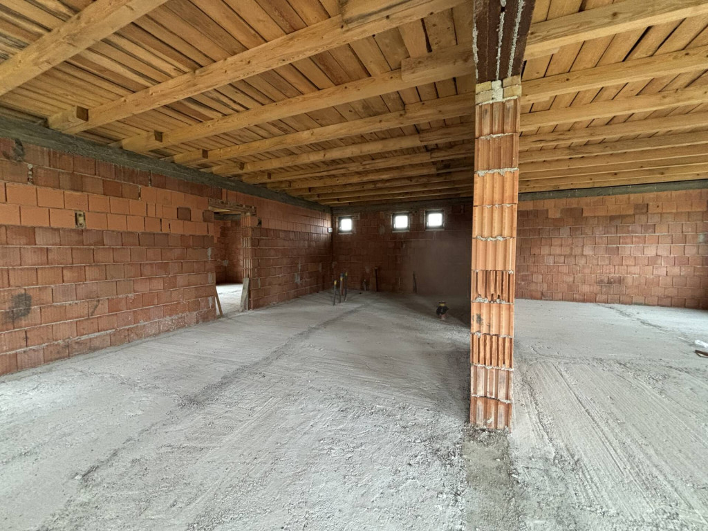 A 180 m² alapterületű épület fafödém szerkezetű, egy tágas, 1800 m²-es telken helyezkedik el. Az aljzatbeton elkészült, a víz kiállások előkészítve, valamint korszerű, háromrétegű műanyag nyílászárók kerültek beépítésre. A közművek közül a gáz az udvaron belül található, a villany az utcában elérhető.