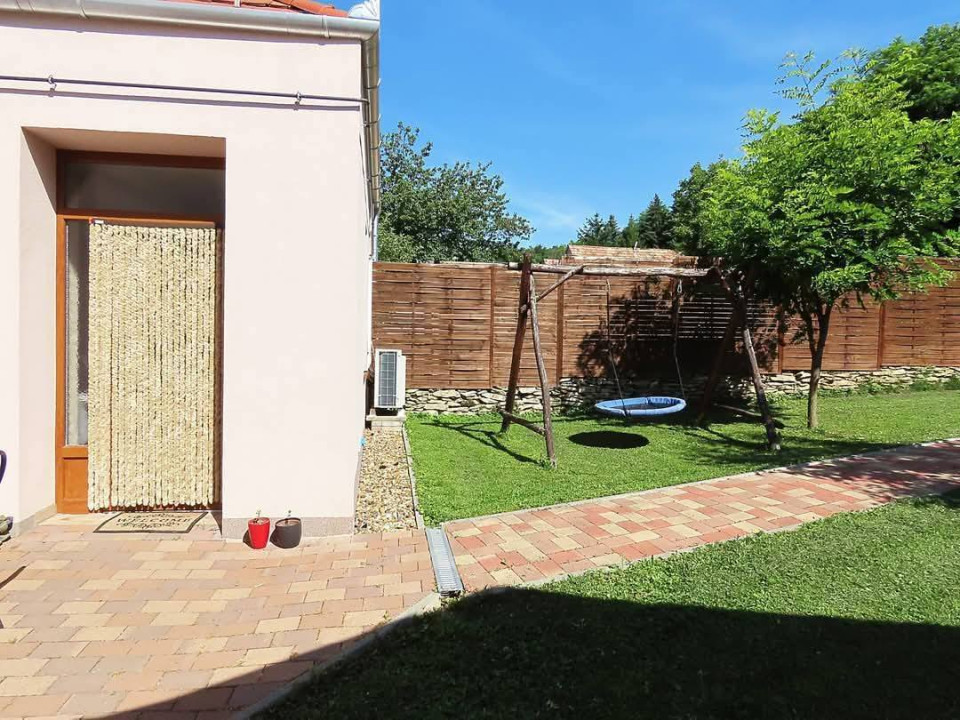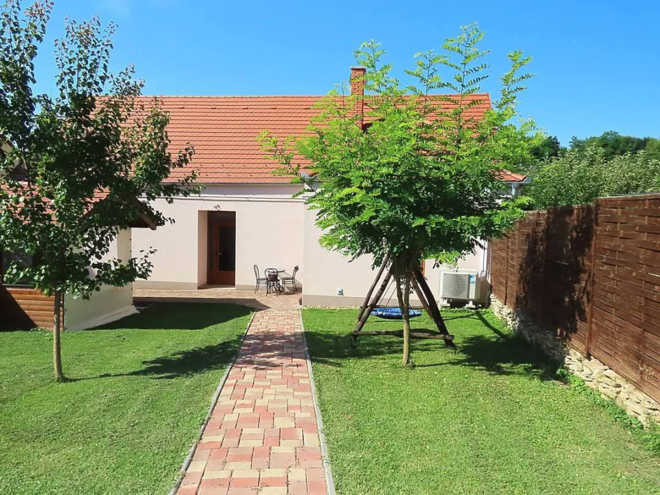 Udvar: nagy részét pázsit borítja, rajta gyümölcsfákkal (cseresznye, meggy, barack). Itt épült meg egy fa szerkezetű nyári konyha, ami jó idő esetén a sütés - főzés helyszíne lehet. A ház körül esztétikus térkő burkolat található. Parkolni a zárt udvarban lehet.
