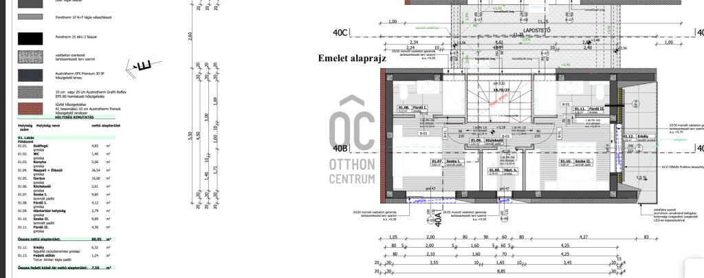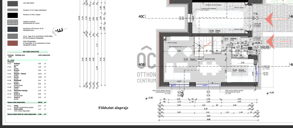 - Falazat: Porotherm 30 + 15 cm hőszigetelés