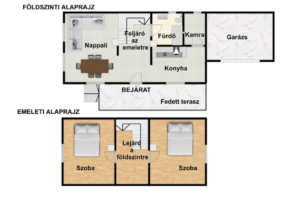 -a földszint nívós kerámia, míg a tetőtér fa padlóburkolatot kapott