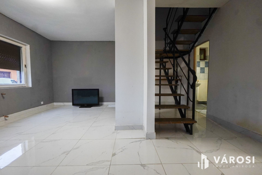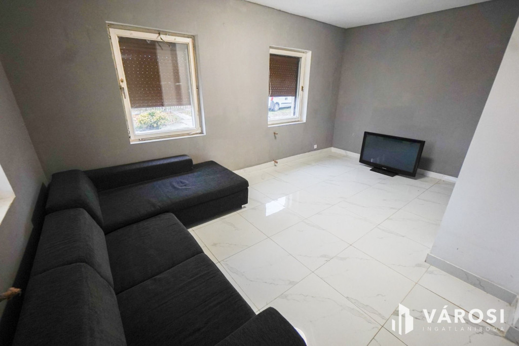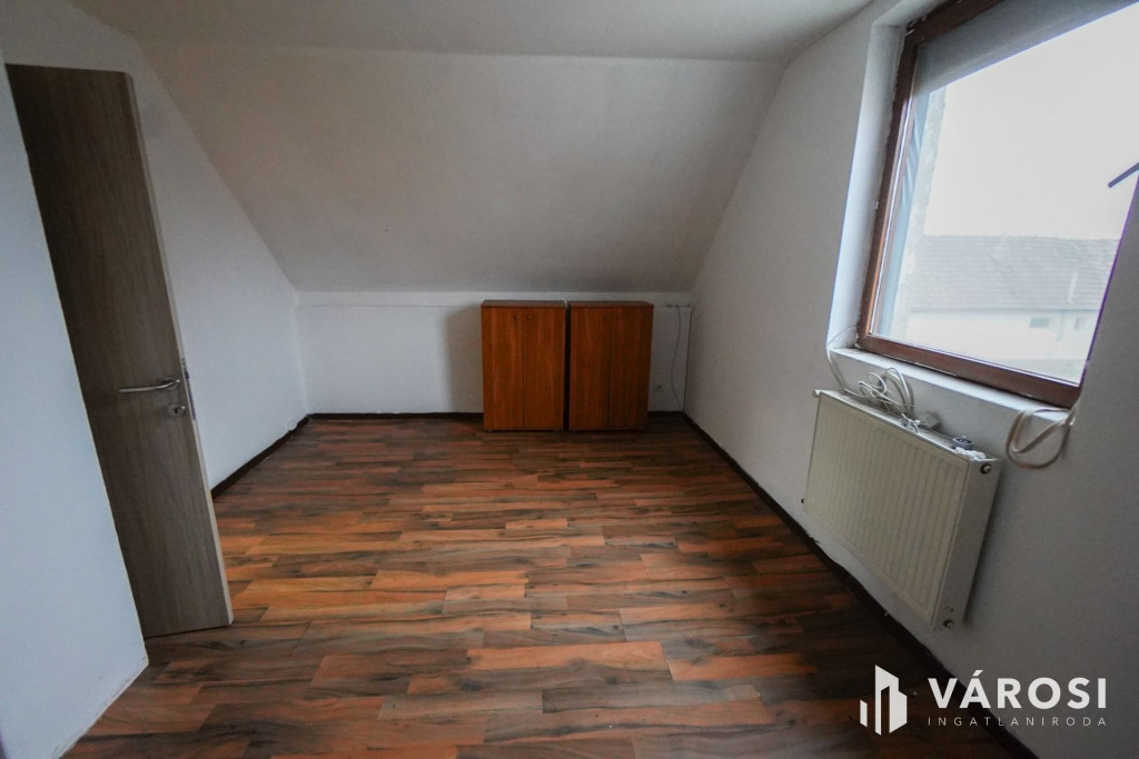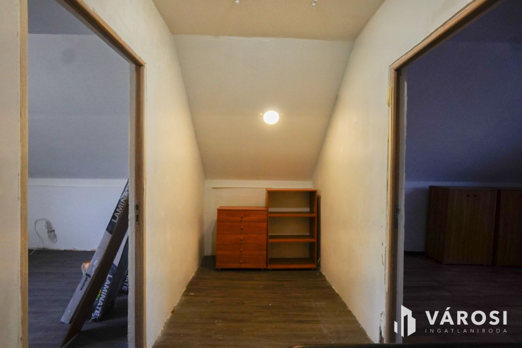 -összesen bruttó 85nm-es( nettó 73nm-es lakrész konyha, fürdőszoba, 1 nappali, 2 lakószoba, előszoba, közlekedő és egy kamra) 15nm-es fedett terasz, 15nm-es garázs belül és egy kétállásos garázs az utcafronton