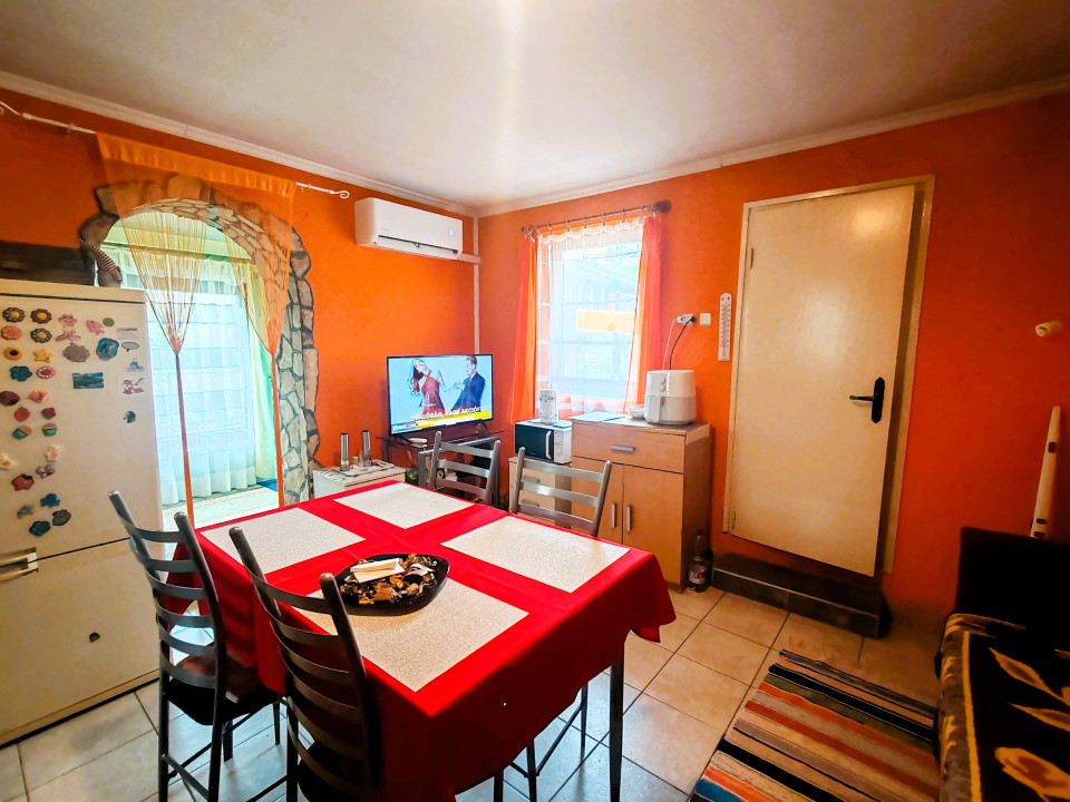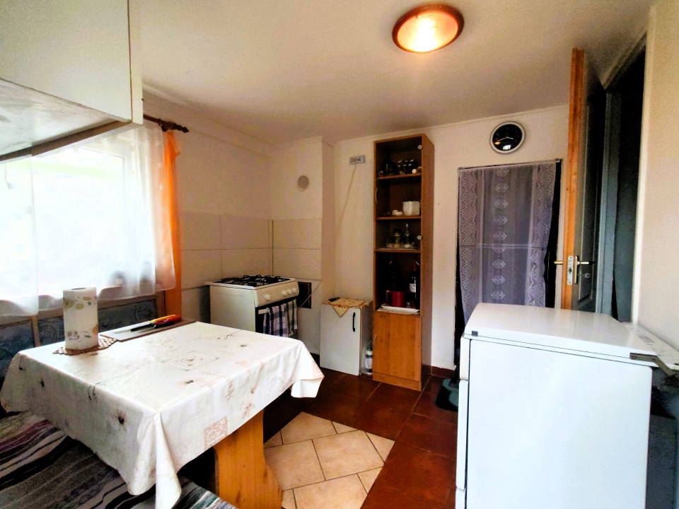 A telken két különálló épület található, ami rengeteg lehetőséget rejt magában. A nagy ház elosztása praktikus és otthonos: közlekedő, 2 szoba, fürdőszoba, míg a kisebb épületben konyha, tároló és toalett kapott helyet – tökéletes akár vendégek fogadására, akár egy külön kis kuckó kialakítására. A fürdőszoba felett egy gyönyörű terasz kapott helyet, amely ideális a reggeli kávé elfogyasztásához, esti beszélgetésekhez vagy egyszerűen a nyugodt pihenéshez – igazi kis feltöltődő sarok a természet ölelésében.