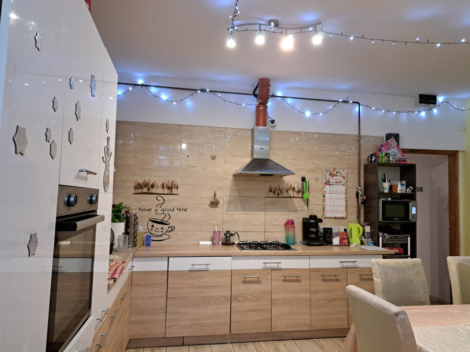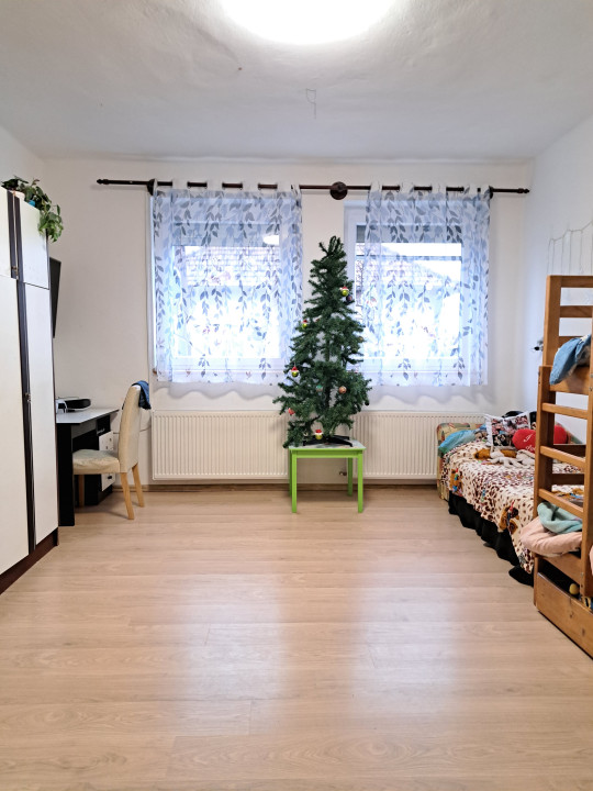 Béke-telep csendes utcájában eladó egy 81,2 nm-es családi ház és az ingatlan folytatásaként egy félkész állapotban lévő 61 nm-es lakrész. A főépületben 3 külön bejáratú szoba, egy tágas konyha+étkező, egy fürdőszoba – wc-vel együtt-, egy előtér és közlekedő található. A szobák laminált parkettásak, a többi helyiség hidegburkolattal ellátott. Az ingatlant 4 éve újították fel, ekkor új villamoshálózat (32 Amperre bővítve is), új víz-és szennyvíz rendszert és új központi gázfűtés lett kialakítva. A fűtést kombi gázkazán biztosítja, viszont a melegvízhez még egy plusz villanybojler is felhelyezésre került. A nyári meleg hónapok miatt egy klíma is beszerelésre került pár éve. A gépesített konyhabútort a vételár tartalmazza. Az ingatlan hőszigetelést kapott, csak a színezés vár az új tulajdonosra kedve szerint.
