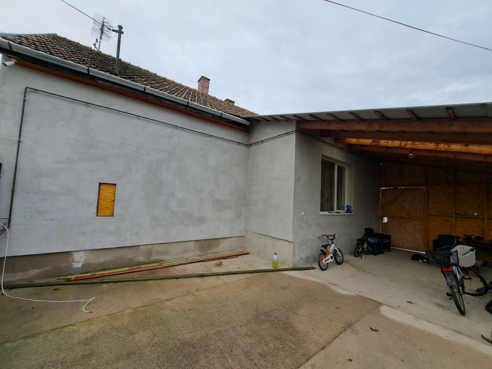 Béke-telep csendes utcájában eladó egy 81,2 nm-es családi ház és az ingatlan folytatásaként egy félkész állapotban lévő 61 nm-es lakrész. A főépületben 3 külön bejáratú szoba, egy tágas konyha+étkező, egy fürdőszoba – wc-vel együtt-, egy előtér és közlekedő található. A szobák laminált parkettásak, a többi helyiség hidegburkolattal ellátott. Az ingatlant 4 éve újították fel, ekkor új villamoshálózat (32 Amperre bővítve is), új víz-és szennyvíz rendszert és új központi gázfűtés lett kialakítva. A fűtést kombi gázkazán biztosítja, viszont a melegvízhez még egy plusz villanybojler is felhelyezésre került. A nyári meleg hónapok miatt egy klíma is beszerelésre került pár éve. A gépesített konyhabútort a vételár tartalmazza. Az ingatlan hőszigetelést kapott, csak a színezés vár az új tulajdonosra kedve szerint.