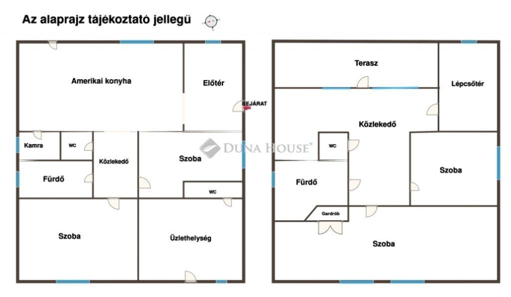 A kialakítás lehetővé teszi a külön bejáratos megoldást: az emelet és a földszint is alkalmas önálló lakrész kialakítására.