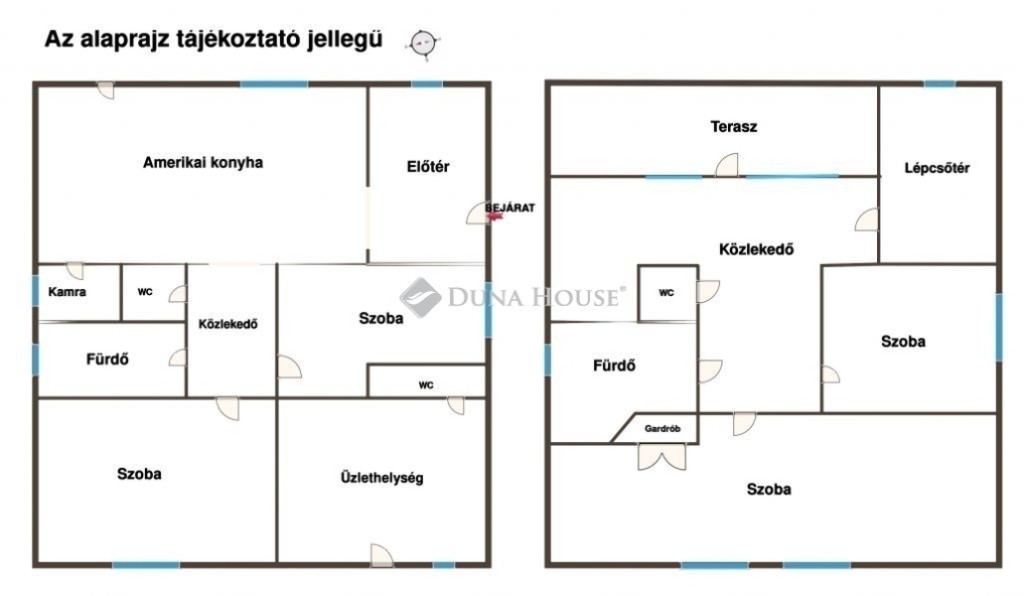 A földszinten amerikai konyhás nappali, hálószobák, fürdőszoba és külön WC található, az emeleten pedig további hálószobák, egy fürdőszoba, WC, valamint egy tágas terasz.