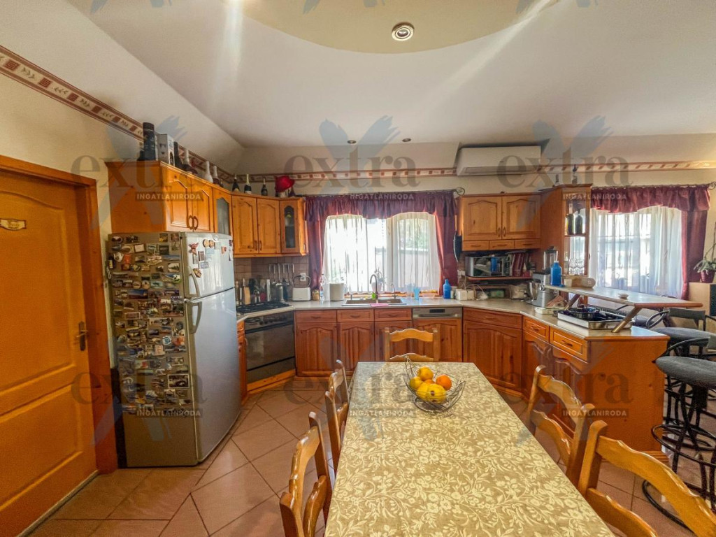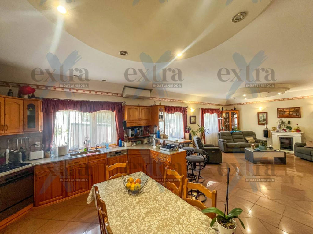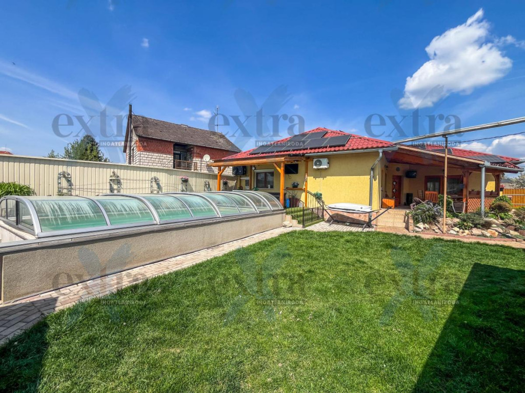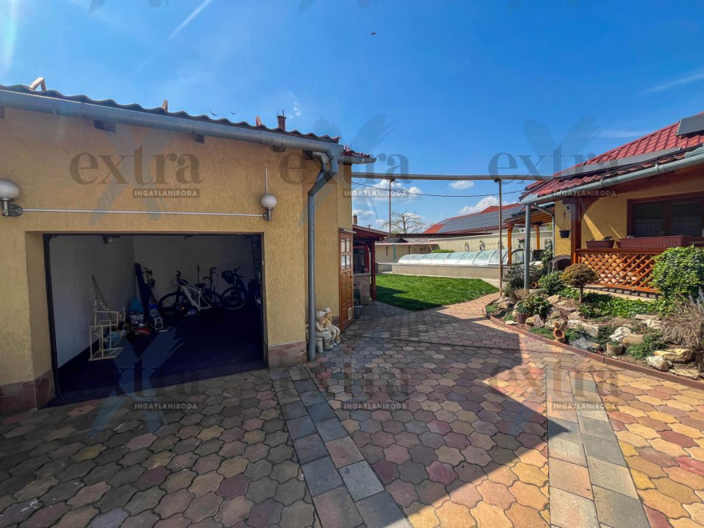 A 600 m²-es telken számos extra szolgálja a kényelmet és a kikapcsolódást. A 15 kW-os napelemrendszer jelentős rezsicsökkentést biztosít. A sósvizű, fűthető medence áramoltatóval tökéletes a nyári pihenéshez, míg a kerti sütögető ideális családi és baráti összejövetelekhez.