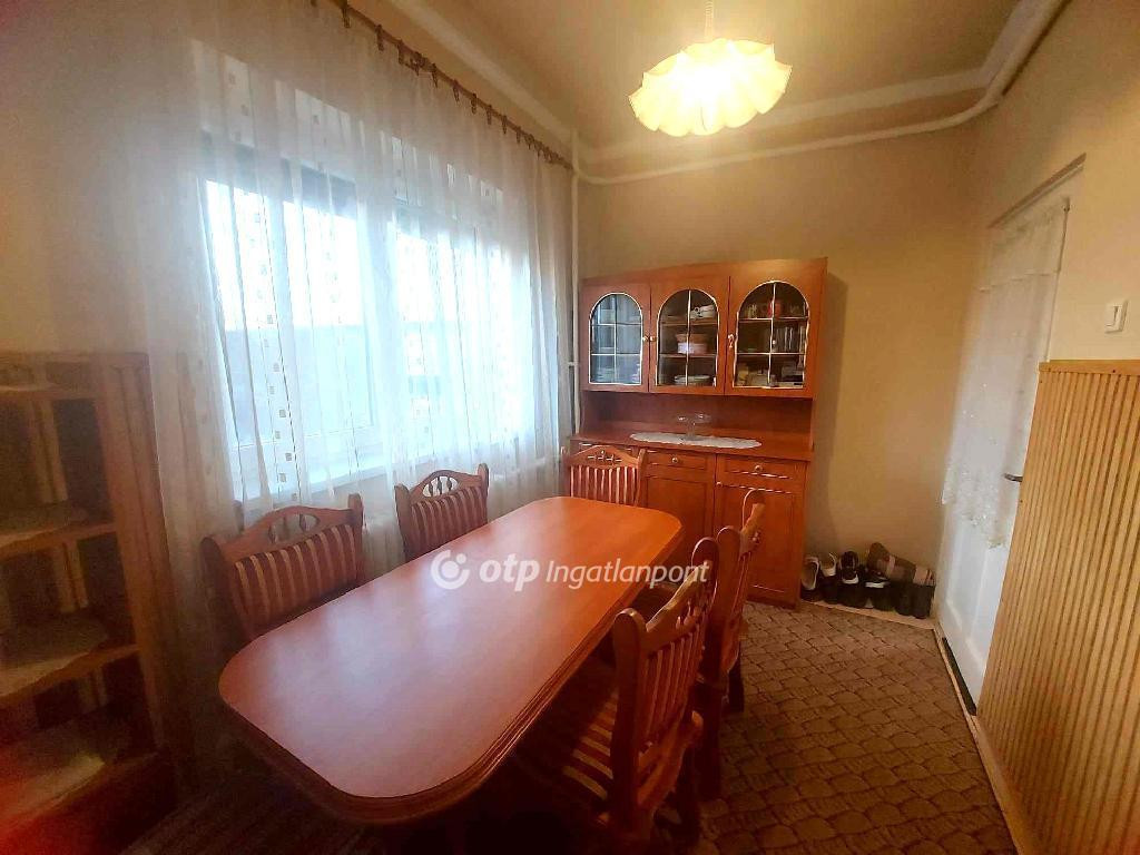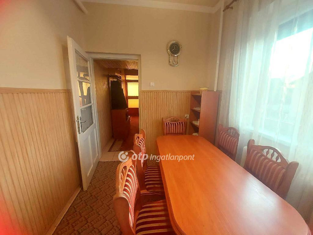 A földszint helyiségei: szoba, étkező, konyha, közlekedő, kamra és tusoló, 3 éve volt felújítva.