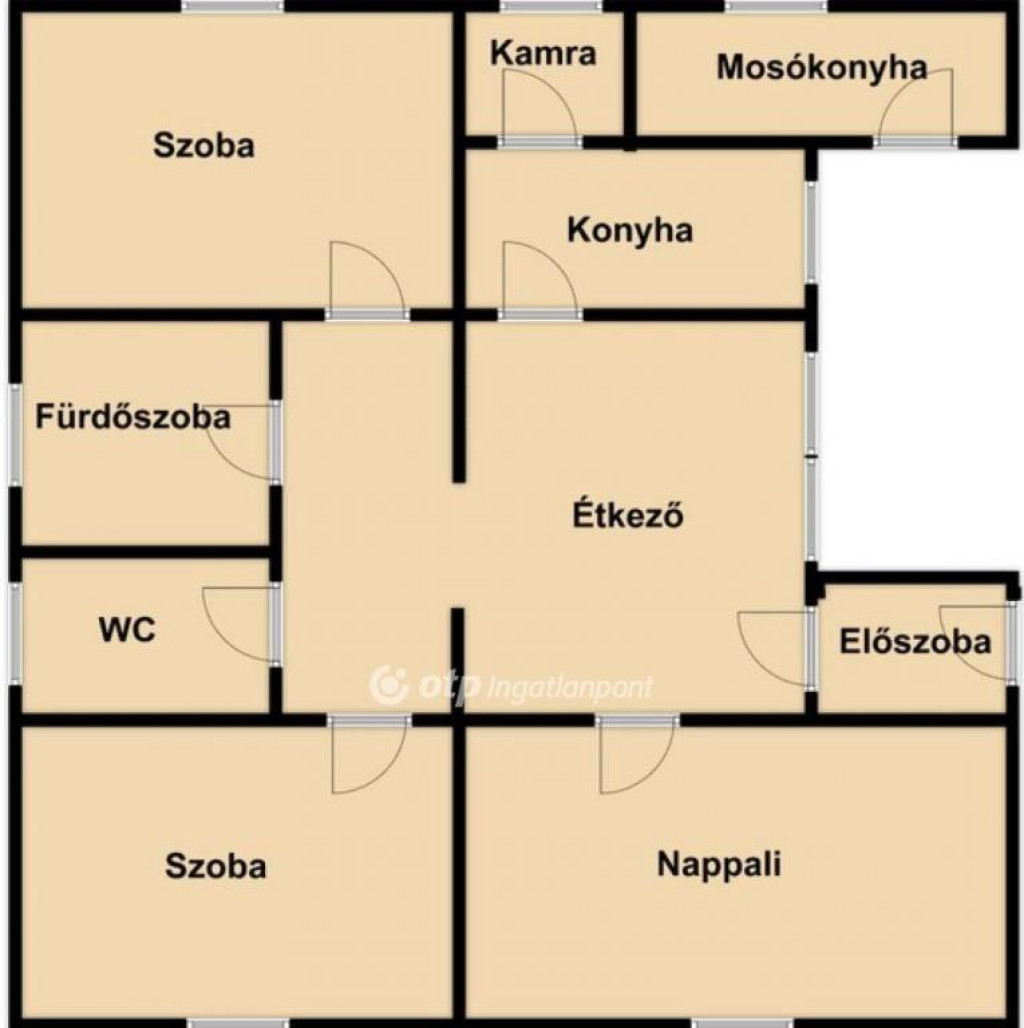 Helyiségei: nappali, 2 szoba, étkező, konyha, kamra, fürdőszoba, Wc, előszoba, mosókonyha és terasz.