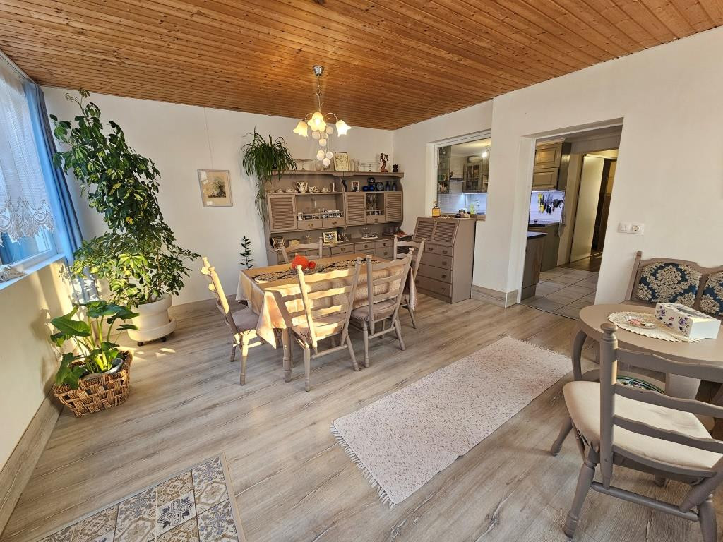 Igalban a gyógyfürdőtől 5 perc sétára kínálunk megvételre két, egymással kertkapcsolatban lévő házat. Az egyik egy szépen felújított háromszintes lakóépület, ahol mindhárom szinten ki van alakítva egy-egy önállóan megközelíthető lakrész saját konyhával és fürdővel, így külön is használhatók, kiadhatók. A földszint helyiségei: nappali étkezővel, terasszal, közlekedő, ahonnan minden nyílik, konyha, kamra, fürdő, külön WC, mosókonyha, tároló, egy hálószoba, és egy tágas előtér, ami jelenleg alkotó műhely is egyben. Alapterülete 77 m2. Az első emelet helyiségei: étkezős nappali konyhafülkével, erkéllyel, fürdő WC-vel és két háló. Ez a szint 43 m2 plusz a 11 m2-es erkély. A legfelső szint az előzőhöz hasonló elosztású, csupán kicsit kisebb, 40 m2-es, amihez 8 m2-es erkély tartozik. A teljes lakóterület tehát 160 m2. Ez az épület állandóan lakható, használható, fűtése cirkós, külső nyílászárói hőszigeteltek, műanyag keretesek. A hozzá tartozó telek 285 m2. A másik épület a kerten keresztül, de önállóan is megközelíthető, kétszintes, jó állapotú, hétvégi ház megjelölésű, egyben használható. A földszintre kellemes, tágas fedett, növényzettel körül vett teraszról lépünk be az étkezős nappaliba. Van még itt két hálószoba, konyha, fürdő, külön WC és egy kis közlekedő. Az emeletre a nappaliból vezet a lépcső, fent szintén ki van alakítva egy nappali, két háló, és itt is van fürdő, külön WC. A teljes alapterület 81 m2, plusz a terasz kb. 15 m2. Itt központi fűtés helyett a földszinten van egy kandalló, illetve elektromos radiátorok állnak rendelkezésre szükség esetén a hűvösebb időkben. Ez az épület ezért jelenleg inkább a melegebb szezonban használható, bár a külső nyílászárók itt is hőszigeteltek, műanyag keretesek. Megoldható az állandó kihasználhatóság, lakhatóság is. A telek 329 m2-es. Mindkét telek (összesen: 614 m2) szépen karbantartott, parkosított. Csendes, nyugodt utcában fekvő, bejáratott vendégkörrel rendelkező 4 szálláshely (lakótér összesen: 241 m2, teraszok, erkélyek: 50 m2) remek elhelyezkedéssel a Balaton és Kaposvár között, a neves gyógyvíz városában! Az előzőekkel összefüggő telek vásárolható még hozzá.