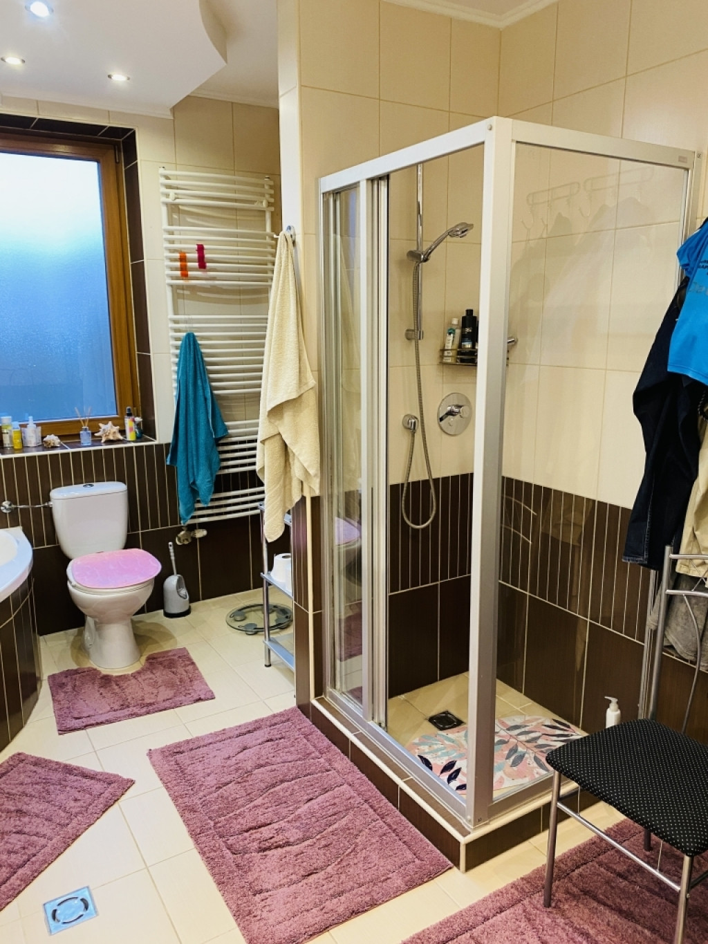 Otthoni SPA: Két fürdőszoba, melyből az egyik egy komplett wellness részleg szaunával, sarokkáddal és zuhanyzóval.