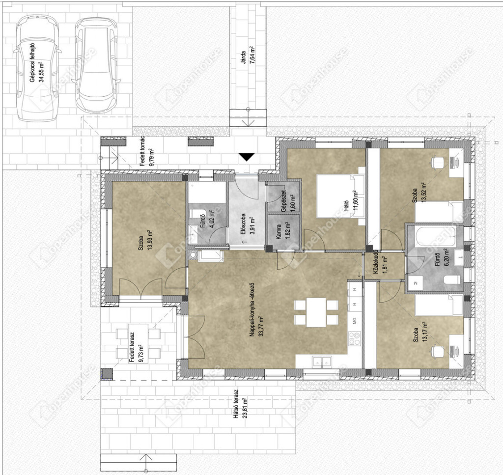 105m2-es családi ház + 10m2-es fedett terasz + 10m2 fedetlen terasz