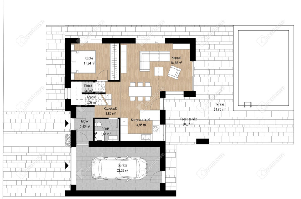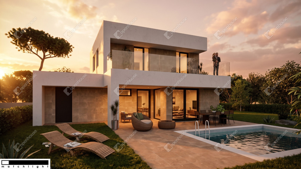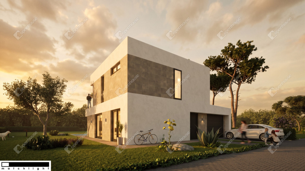 Az ingatlanról: Az ingatlan minőségi alapanyagok felhasználásával és a modern technológia alkalmazásával készül, a lehető legmagasabb színvonalon, minimál stílusban. Az ingatlant a nagy terek jellemzik ami magába foglal egy hatalmas amerikai konyhás nappalit, 4 hálószobát, 2 fürdőszobát WC-vel, egy tárolót, egy garázs, egy nagy méretű fedett teraszt és egy nagy méretű tetőteraszt is. Az ingatlanhoz tartozik még 2 db térkövezett kocsibeálló és egy térkövezett gyalogos közlekedő. Az ingatlan saját 955 m2-es önálló telekkel rendelkzeik.