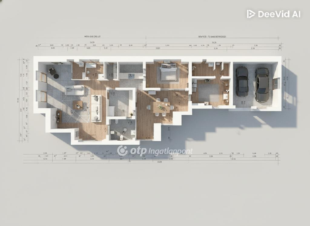 A házban három tágas hálószoba, egy világos nappali, valamint amerikai konyhás étkező kapott helyet. Emellett külön fürdőszoba, két mellékhelyiség és egy praktikus gardrób is növeli a kényelmet.