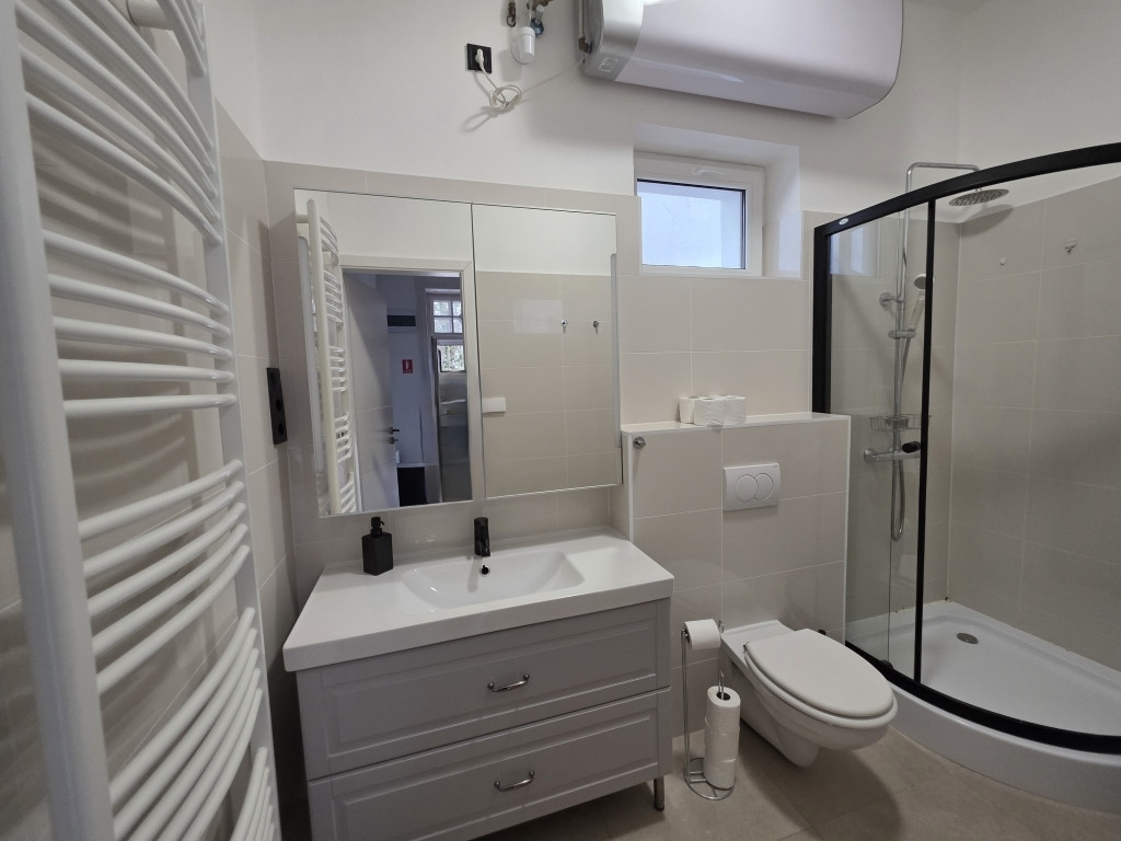 Helyiségei: utcafront felőli az első lakás előtt hangulatos térkövezett veranda, melyen belépve konyha - étkező, fürdőszoba és egy nagyszoba található. A hátsó lakás elrendezése: előszoba, wc, gépészeti helyiség, konyha – étkező, szoba, gardrób, közlekedő, fürdő, szoba. (Alaprajz kérhető).