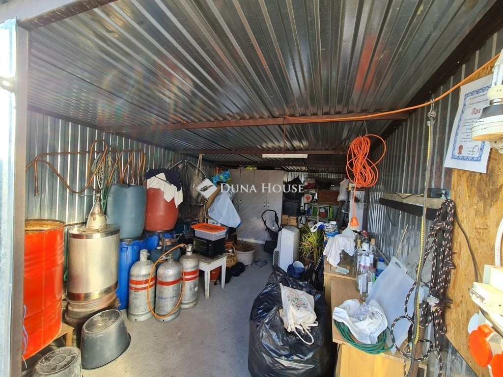 A telekhez tartozik egy kétállásos fedett autóbeálló és két különálló, fedett garázs, melyekbe 3x12 amperes áram került bevezetésre akár műhely céljára is kiváló választás.