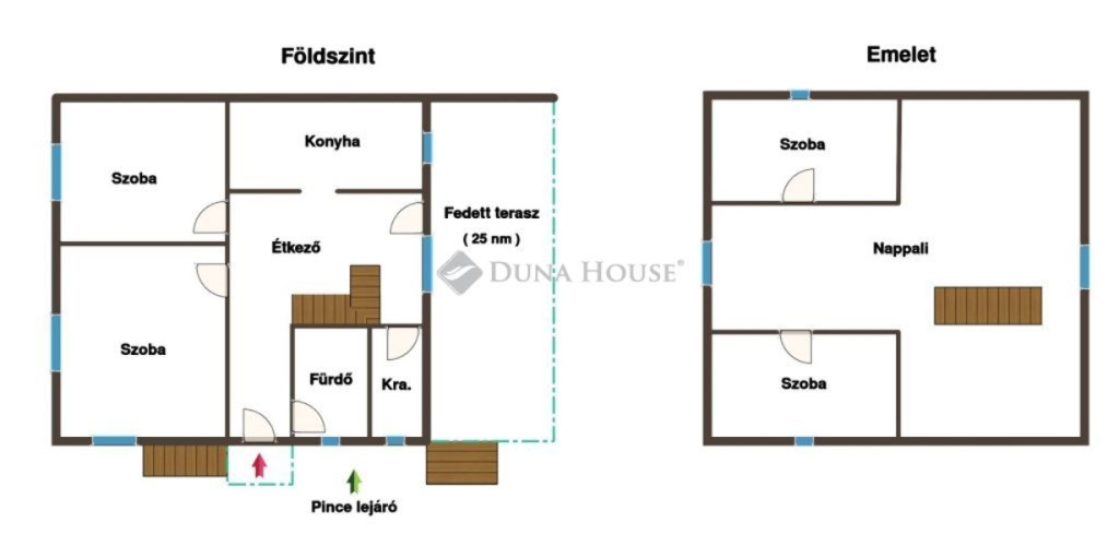 - Földszinten 2 szoba + a tetőtérben 2 szoba ( további háló is kialakítható)