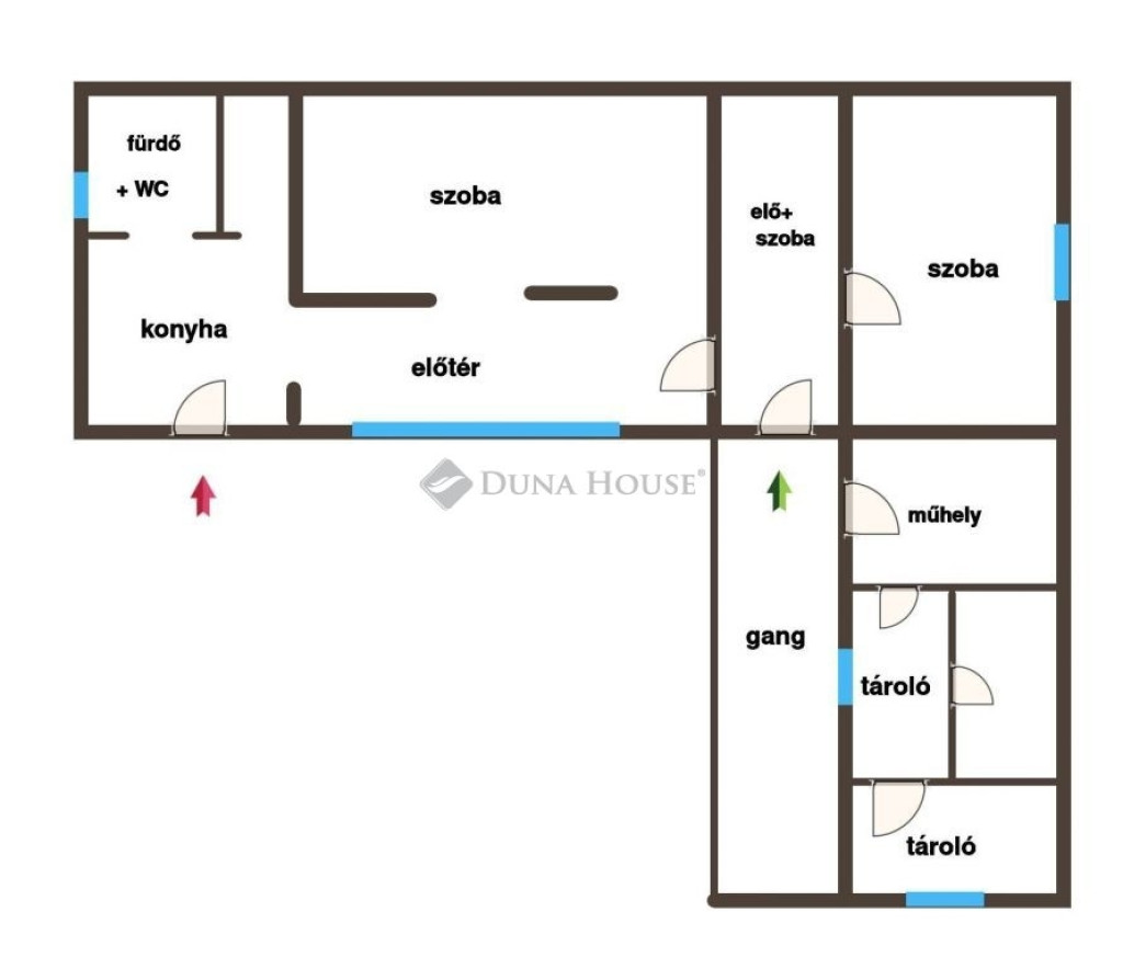 - 2 szoba, konyha, fürdő+WC, közlekedő