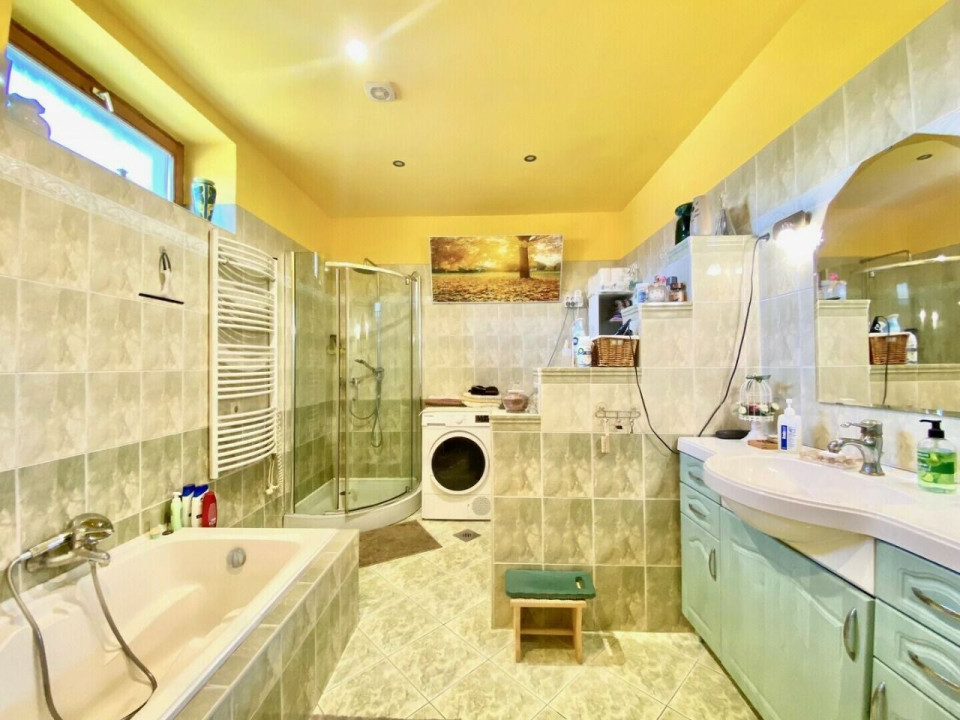 - Jelenleg 0 Ft a villanyszámla, mert egy 9 kW-os napelem rendszer működik, ami még 9 évig szaldó elszámolásban van. A jó tájolású tetőnek köszönhetően ez a rendszer akár bővíthető is és a teljes fűtés rendszer átállítható, így az egyébként is alacsony rezsi nullára is kihozható.