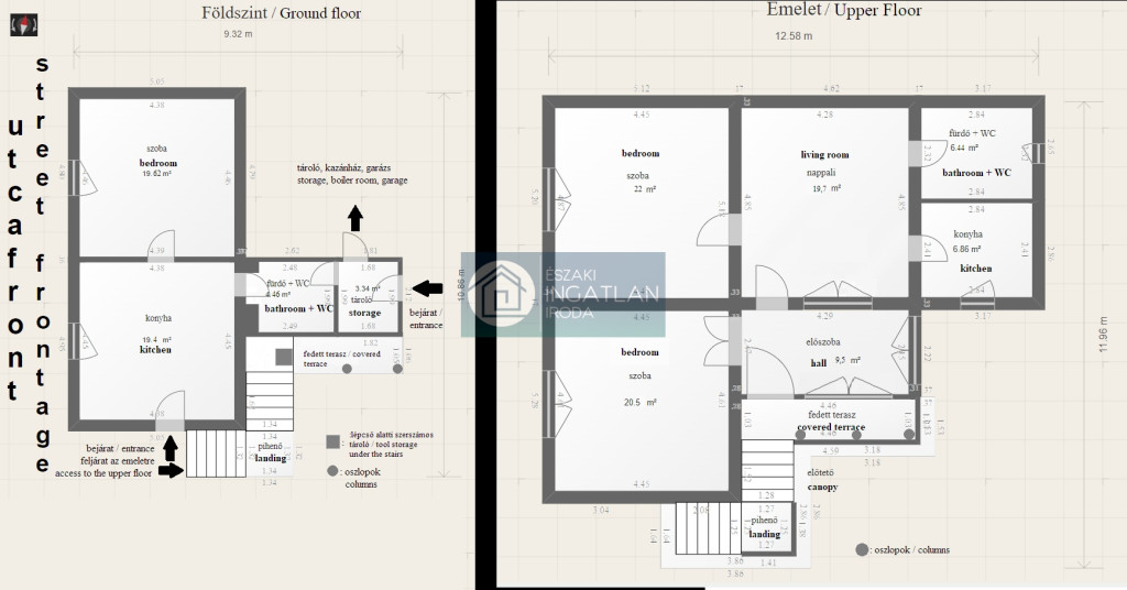 A műanyag nyílászárók a földszinten és az emeleten egyaránt jó állapotúak.