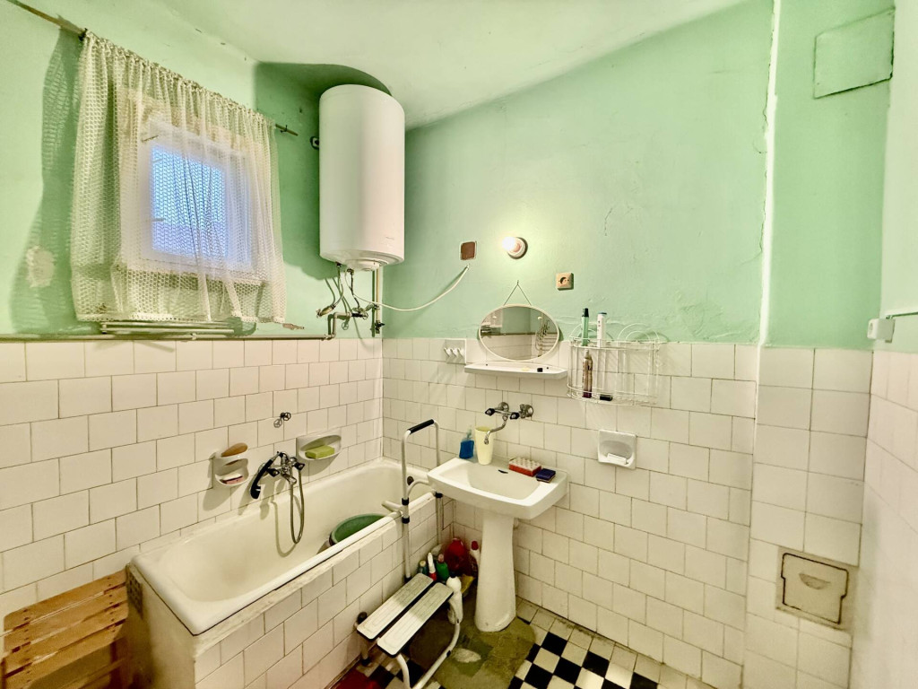 — 6 m2-es fürdőszoba káddal, bojlerrel