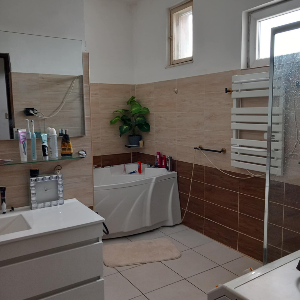 Az ingatlan két külön konyhával és fürdőszobával rendelkezik, - a szintek jól elkülöníthetők, biztosítva az önálló életteret több generáció számára is. A ház padlófűtéssel és klímával felszerelt, így egész évben kényelmes, korszerű komfortot nyújt.
