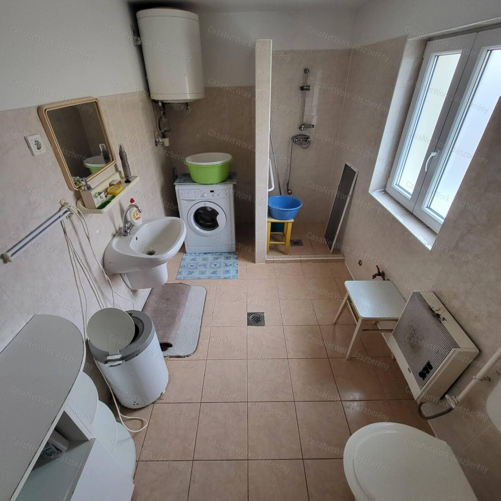 A jászberényi CasaNetWork Ingatlaniroda megvételre kínál egy felújított, 64 m2-es alapterületű családi házat Jászapáti csendes, nyugodt környékén. Jászapáti Magyarország középső részén, a Jász‑Nagykun‑Szolnok vármegye északi részén, a síkvidéki térségben, a Zagyva és a Tisza folyó között helyezkedik el.- A település folyamatosan fejlődik, minden megtalálható a településen: üzletek, iskolák, gimnázium, óvoda, bölcsőde, orvosi rendelő, gyógyszertár, termál (gyógy)fürdő, posta, piac, cukrászda, múzeum.- A település közúton (31 -es főút ), vasúton (Szolnok-Vámosgyörk vonal) és busszal is megközelíthető. Jászberénytől 20, Szolnoktól és Egertől 50, Budapesttől 100 km-re található. Minden hónap első vasárnapján országos állat- és kirakodóvásár várja az érdeklődőket a városban. Jellemzők:- a telek területe: 529 m2,- a ház területe: 64 m2,- nyílászárók fajtája: műanyag,- falazata: vályog,- tetőfedés anyaga: cserépmintás lemeztető,- a fűtésről gázkonvektorok gondoskodnak.Az ingatlan 2023-ben kívül-belül felújítására került. Az udvar gondosan rendezett, ahol tágas alsóépület és műhely is rendelkezésre áll, amely garázsnak, kocsibeállónak is kialakítható, használható. Békés, jó szomszédi viszonyok jellemzik a környéket. A házban található bútorok, berendezések a vételár részét képezik.Az ingatlan per-igény és tehermentes.Amennyiben a fenti 182100475-es azonosító számú eladó ház, vagy bármely kínálatunkban található ingatlan felkeltette érdeklődését, kérem hívjon bizalommal!/A hirdetésben szereplő információk a megbízótól kapott adatok alapján készültek./Irodánk teljes körű szolgáltatással áll ügyfelei rendelkezésére: hitelügyintézés, ügyvédi szolgáltatás, ingatlan értékbecslés, energetikai tanúsítvány készítése.CasaNetWork - Ingatlanban otthon vagyunk!