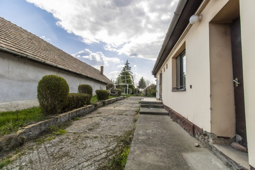Megvételre kínálok Jobbágyi központi részén egy 792 nm telken, jó állapotú, vályog + tégla falazatú, dél-nyugati fekvésű, 2 szoba + nappalis nettó 72,68 nm-es, bruttó 105,97 nm-es családi házat.