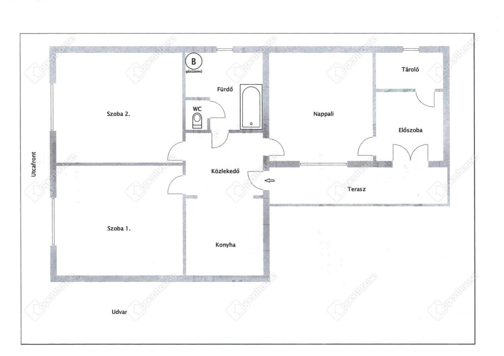 Helységek: 2 szoba, nappali, konyha-étkező, fürdőszoba, külön WC, előszoba, kamra