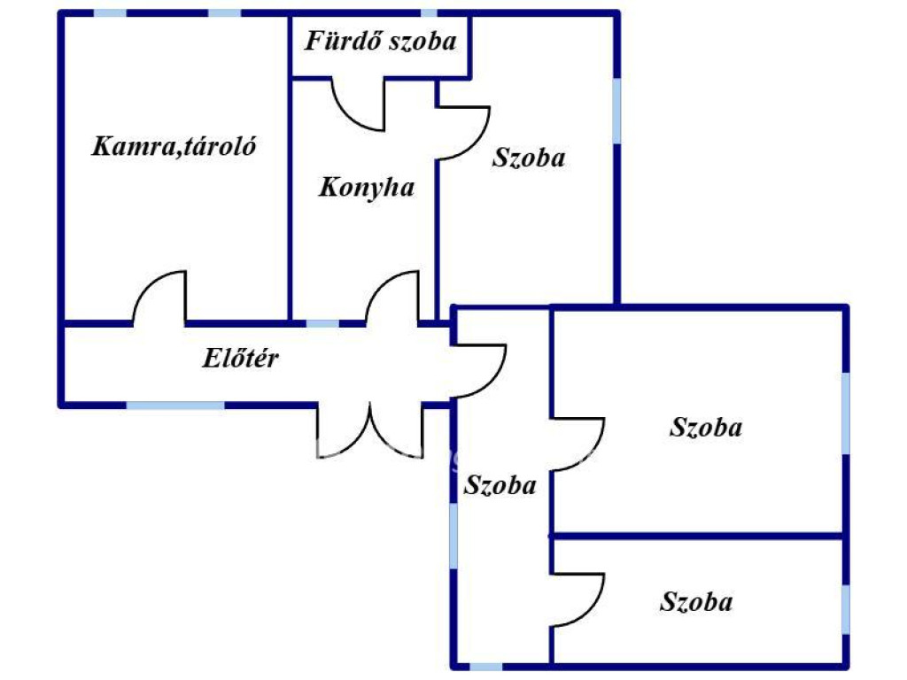Konyha, fürdőszoba, közlekedő, előtér, kamra;