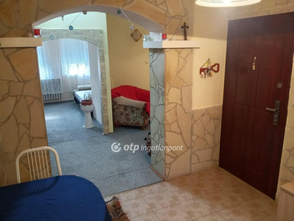 A kiváló lokációval rendelkező ingatlan a település központjában, az újtelepi részen, a polgármesteri hivatal szomszédságában található, egy tégla szerkezetű 12 lakásos társasház első emeletén helyezkedik el, 2 m2-es saját tároló tartozik hozzá. A hangulatos, egyedi elrendezésű lakáson belül 1 szoba, 2 félszoba, 1 előszoba-étkező, 1 konyha, és 1 fürdőszoba-WC került kialakításra. A lakószobák padlóját szőnyegpadló borítja, a többi helyiséget járólappal burkolták. A belső terek közötti átjárás dekoratív boltíveken keresztül biztosított, csupán a tusolóval felszerelt fürdőszoba elé került egy darab faajtó. A külső nyílászárók hőszigetelt műanyagból készültek, az ablakok redőnnyel, és szúnyoghálóval felszereltek. Az otthon melegéről radiátoros hőleadással modern kondenzációs gázkazán gondoskodik. A kitűnő állapotú, alacsony rezsijű lakás ideális választás lehet bármely korosztálynak: egyedülálló személynek, idős vagy fiatal párnak. Az ingatlan központi elhelyezkedéséből adódóan nagyszerű befektetési lehetőséget kínál: az épületen belül, a földszinten az orvosi rendelők és a védőnői szakszolgálat, a pincében edzőterem működik; a környéken a boltok, a termelői piac, a patika, a mentőállomás, a bölcsőde, az óvoda, az iskola, a játszótér, a focipálya mind megtalálhatóak. A parkolás közterületen ingyenesen megoldható, ugyanakkor a lakóépület mögött mobilgarázs telepítésére is van lehetőség. A társasház szigetelésére, és a tető cseréjére a közeljövőben kerül sor.