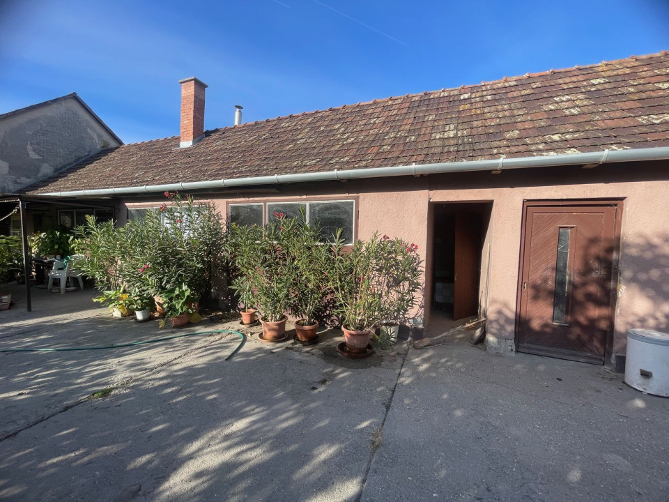 Az udvar betonozott, a kert saját célú zöldségtermesztésre megfelelő méretű.