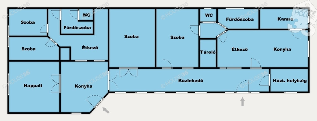 A lakóépület több generáció együttélésére, vagy két lakás kialakítására is alkalmas.