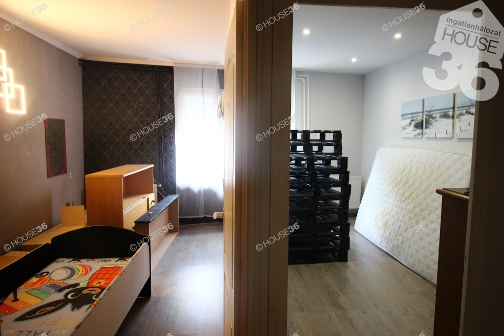 A ház két külön bejárattal rendelkezik, az első lakrész kb. 76 m2: nappali és két félszoba, cserélt nyílászárók és burkolatok, felújított fürdőszoba, klímaberendezés, az utcafronti homlokzaton 5 cm hőszigetelés.