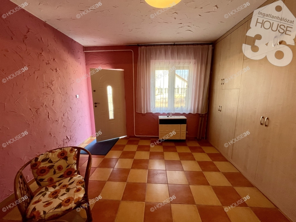 Az alsó szinten 2 szoba, előszoba-nappali, konyha-étkező, kamra, fürdőszoba, WC és egy beépített veranda található 105 m2-en. Az otthon melegéről külön gázkazán gondoskodik. Az új ablakokon szúnyogháló és redőny is található. A fürdőszoba és a wc 5 éve lett felújítva, ekkor a villanyvezetékeket is kicserélték.