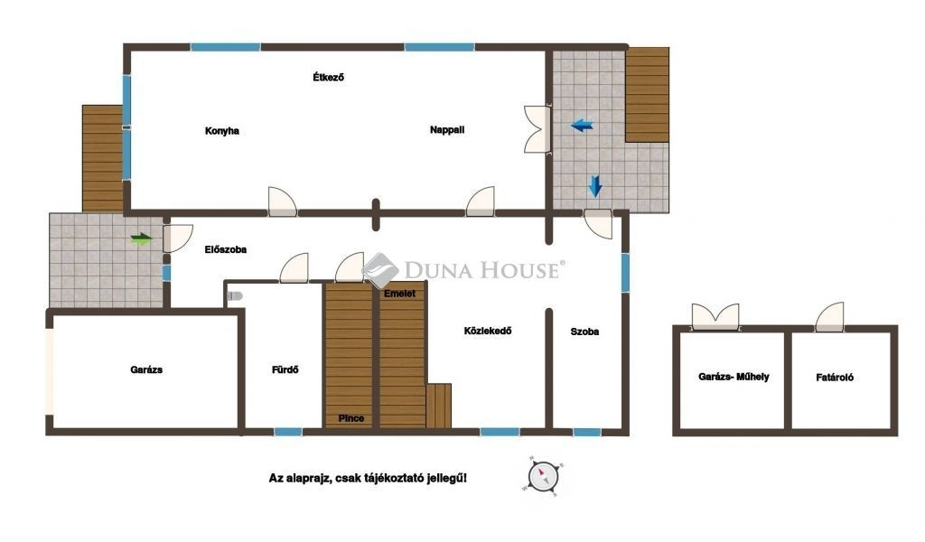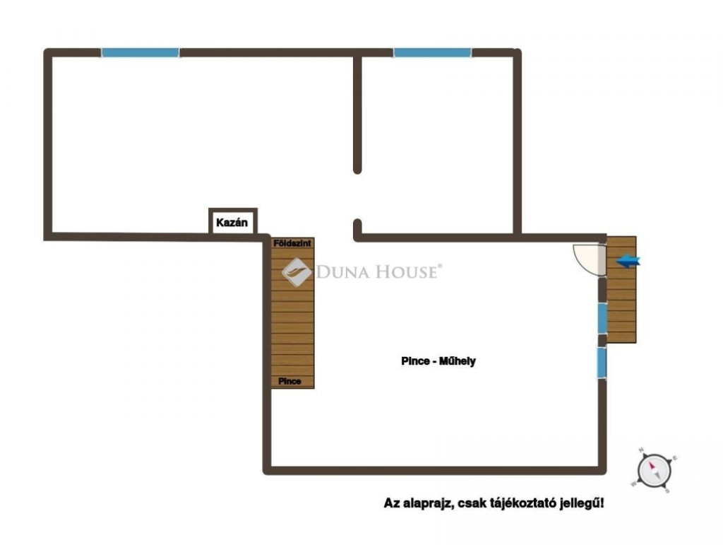 A ház nagy része alápincézett, amely ideális műhely és konditerem kialakítására is.