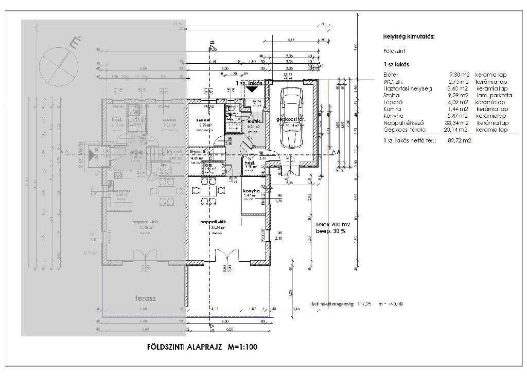 Terasz: 24 m2. Kizárólagos használatú kert: 350 m2.