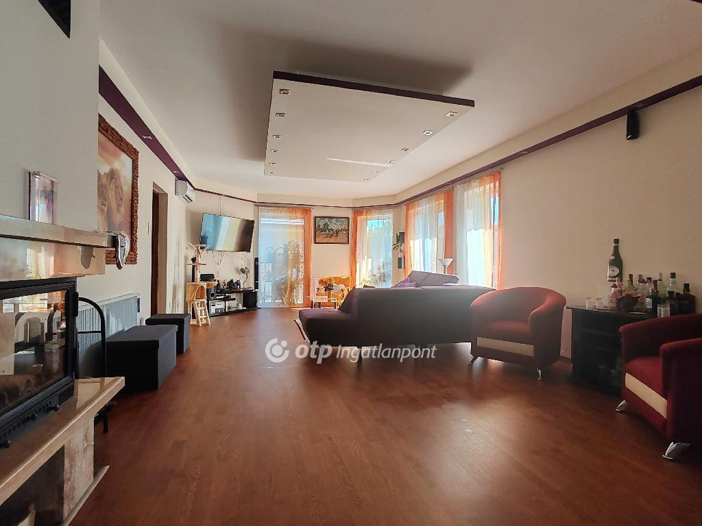 A ház lakószintből és szuterénszintből áll. A felső szinten három hálószoba, két fürdőszoba, gardrób, kamra és egy tágas, napfényes amerikai konyhás nappali található, amely közvetlen kapcsolatban áll a körbefutó teraszokkal és a gondozott kerttel. A teraszokról szép kilátás nyílik a kerti tóra és a zöld környezetre.
