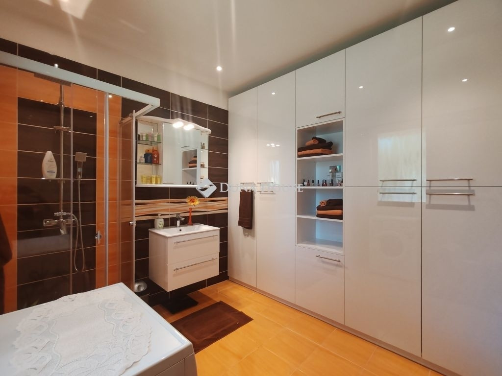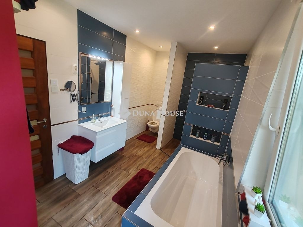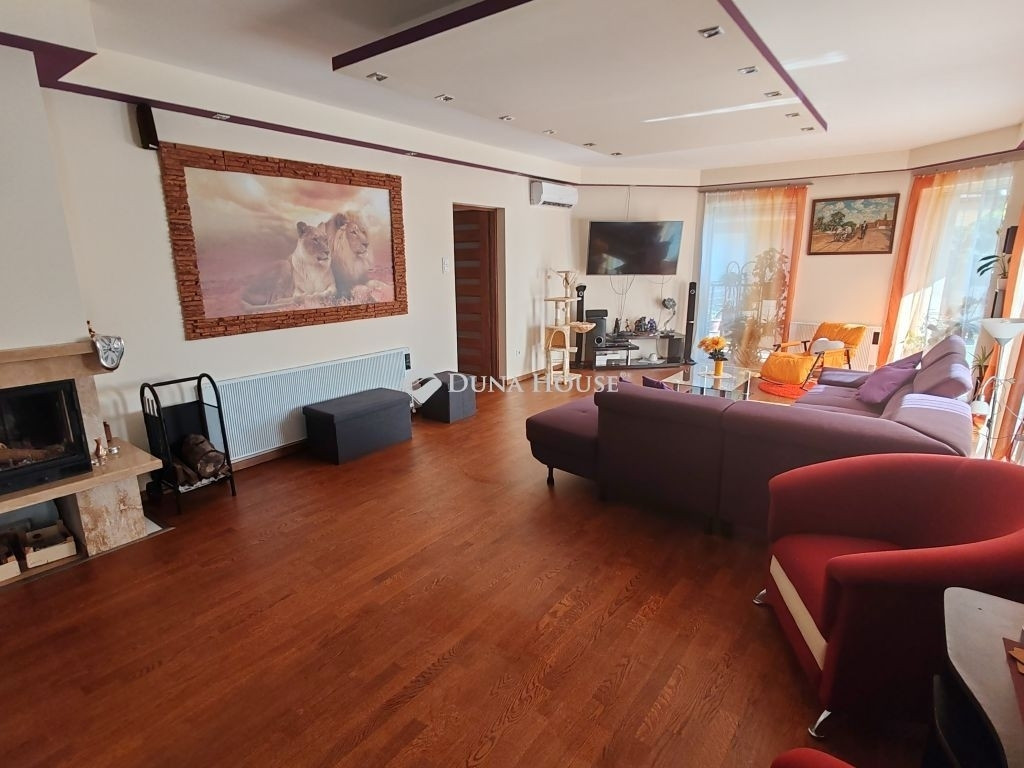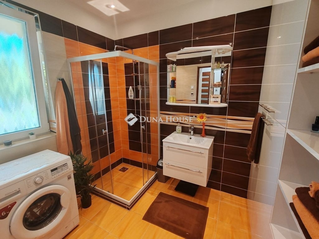 Eladó Kápolnásnyéken 210 m2-es kitűnő állapotú családi ház, 1135 m2-es telken.Velencei tótól 800 méterre, M7-es autópályától 3 km-re.A családi ház 2021-ben épült.Földszinten található 3 hálószoba, gardrób, egy légtérben nappali, konyha, étkező, kamra, 2 db fürdőszoba.Szuterénben található garázs, kamra, wc kézmosóval, gépészeti helyiség.Gépészeti egységben elhelyezésre került: napelem, napkollektor, akkupakkal ellátott hibrid inverter vezérlés, víztisztító-vízlágyító.Családi ház kialakítása, elrendezése, burkolatai luxus körülményeket biztosít.Több kijárat segít a házat körülölelő teraszra kijutni, hogy panorámás kilátással rálássunk a kerti-tóra.Parkosított kerthez tartozik: saját patak, kerti tó, grillező, szaletli.Különálló wellness épület szintén hatalmas ablakfelülettel, ledes, csillagos égbolttal rendelkezik. Beépítésre került egy különálló wc, egy esőztetős zuhanyzó, 4 személyes (bluetooth-os, két motoros) jakuzzi és egy infraszauna. Az épülethez közvetlen napozóterasz tartozik. Televízió és internet kapcsolat is tartozik a kikapcsolódáshoz.A ház felszereltségét a mai kor igényeinek megfelelő eszközök segítik. A kerti éjszakai világítást alkonykapcsolóval ellátott, energiatakarékos LED fényforrások biztosítják. A mélygarázs lejáratát eső és hőmérséklet szenzoros padlófűtés tartja a jeges időkben is szárazon. Mindkét garázskapu elektromos, akár csak a telefonról, távirányítóról üzemeltethető úszó illetve szárnyas kapu. Az ingatlan minden irányban térfigyelő (éjjel látó) kamerákkal van felszerelve.A lakótér fűtését romantikus, gyors és energiatakarékos megoldások adják. A lakótér központi eleme az 12 kW-os látványkandalló eredeti csiszolt kövekből, de a programozható, helyiségenként szabályozható radiátorok (törölközőszárító) épp úgy gondoskodnak a kellemes hőmérsékletről, mint a padlófűtés. Nem utolsó sorban pedig 3 db 3,5 kW-os hűtő-fűtő, energiatakarékos, minőségi klíma jelent megoldást úgy a hideg, mint a meleg idő ellen.Az ingatlan kizárólag elektromos ellátottságú, megújuló energia támogatásokkal, így gázszámlával nem rendelkezik. Szennyvíz csatorna helyett, egyedi bio szennyvíz tisztító tartállyal lett felszerelve.További extrák, a wifiről irányítható kapcsolók, elektromos vezérlésű redőnyök. A nyílászárókon szúnyogháló. Teljes szélességben pakolható (de nem járható) padlástér. Az ingatlan távolabbi pontjaihoz internet erősítő jeladók viszik a kapcsolatot.A ház téglából épült, fafödémmel, tagolt, betoncserép fedésű tetőzettel. A falak 15 cm-es, míg a födém 20 cm-es szigeteléssel ellátott. Az üveges nyílászárók 3 rétegű, biztonsági üveggel védenek a hang illetve hőmérséklet be/ki jutásától.Környezet: Velence Korzó, szabad strand, vízisípálya 8 perc séta (3p autó) Központ: Élelmiszerboltok, orvos, ügyvéd, fodrász 5 percre, óvoda, általános iskola szintén. Szomszéd településen (kerékpárral 5 perc) 8 osztályos két tannyelvű gimnázium, középiskola, sport akadémia is találhatóSportolási és kirándulási lehetőségek. Bp autóval 35 perc, vonattal 40 perc. Székesfehérvár autóval 15 perc, vonattal 20 perc.Az ingatlan per-, és tehermentes. Megállapodás után, rövid időn belül költözhető!Ingatlan beszámítás is szóba jöhet.Keressen bizalommal!
