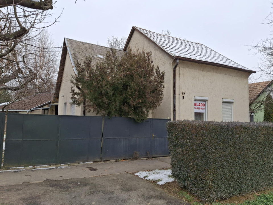 Eladó Kaposváron a Mező csomópont környékén 600 m2-es telken épült 73 m2 alapterületű felújításra szoruló összkomfortos családi ház.