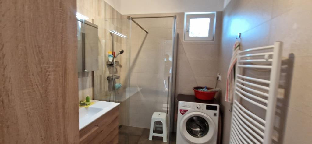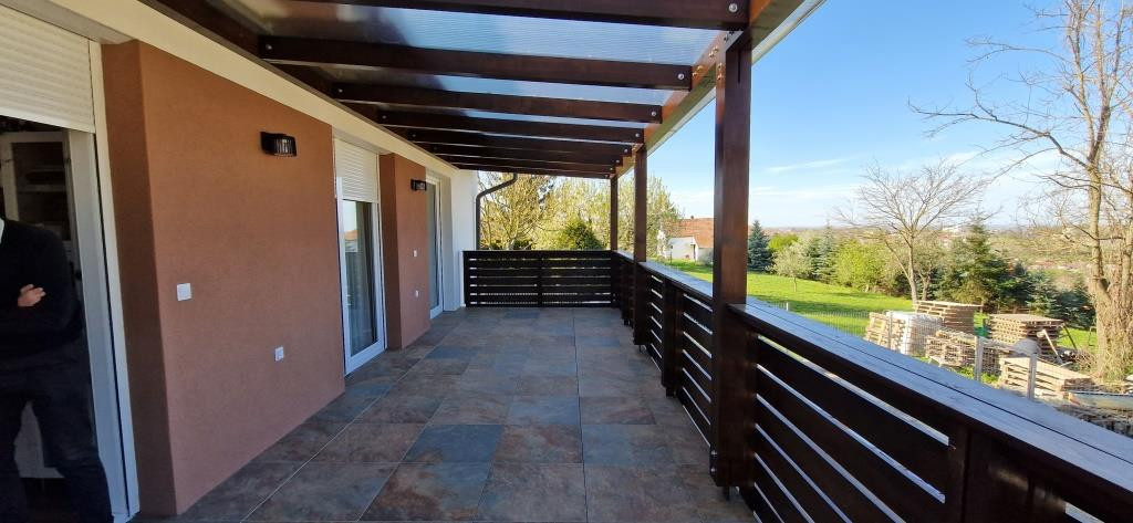 Kaposváron, a Kaposhegy utcában kínáljuk megvételre ezt a kivitelezés alatt álló újépítésű családi házat. Hivatalosan egy ikerház utcafronti része, gyakorlatilag teljesen önálló épület egy összközműves belterületi telken. Alapterülete 90 m2, délre néző 25 m2-es terasszal, 2 db gépkocsibeállóval, 387,6 m2-es saját kertrésszel. Jelenleg kb. 75 %-os készültségi fokban van, vagyis kívülről kész, belül válaszfalazásra vár. Az ár ezt az állapotot tartalmazza, de a kivitelező megegyezés szerint kulcsrakészre befejezi. A belső válaszfalak műszaki kötöttségek figyelembe vételével még természetesen alakíthatók. A tervek szerint praktikus az elrendezés, a ház egyik felében lesz a tágas amerikai konyhás nappali, azaz a közösségi tér, a másik oldalon három külön bejáratú hálószoba és a fürdő, azaz a privát szféra. A teraszra ki lehet menni a nappaliból és két szobából is.