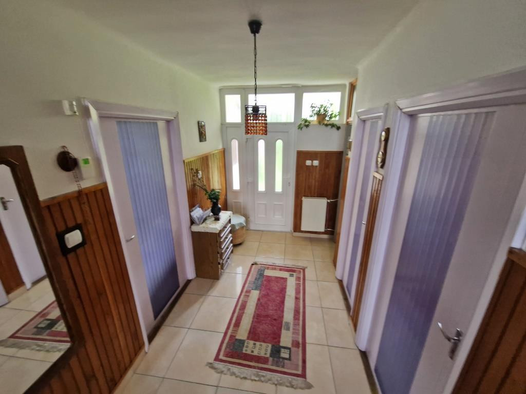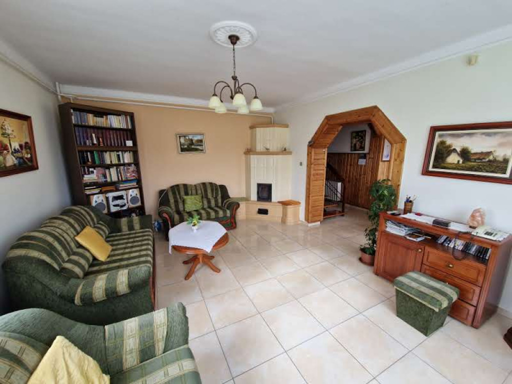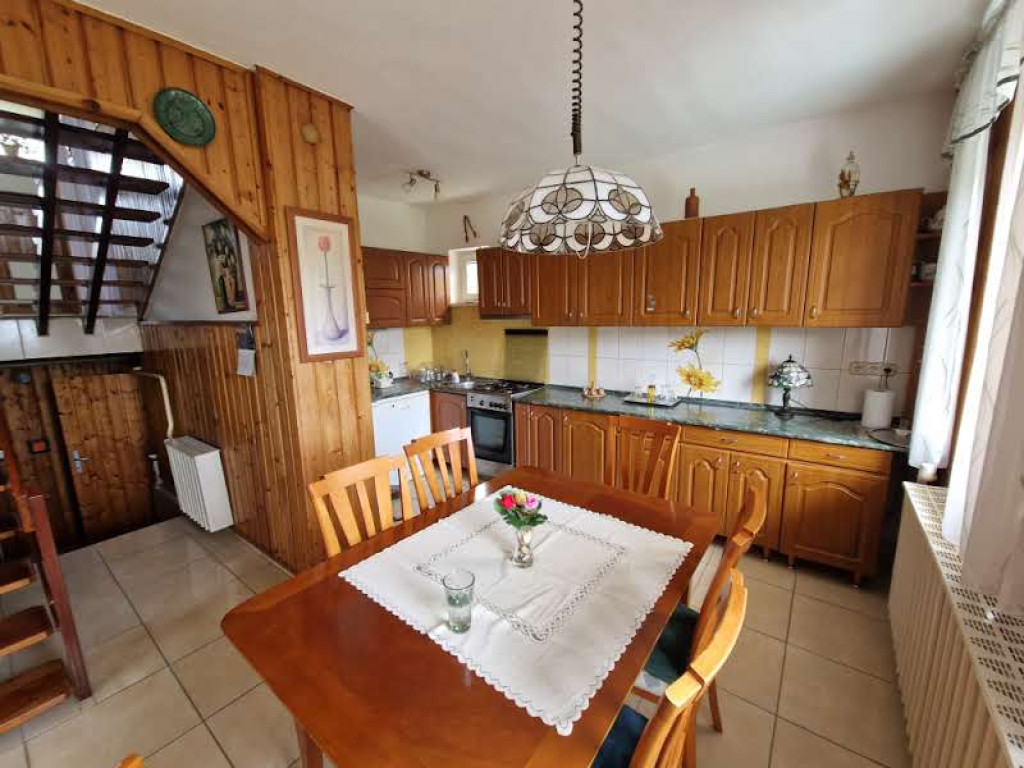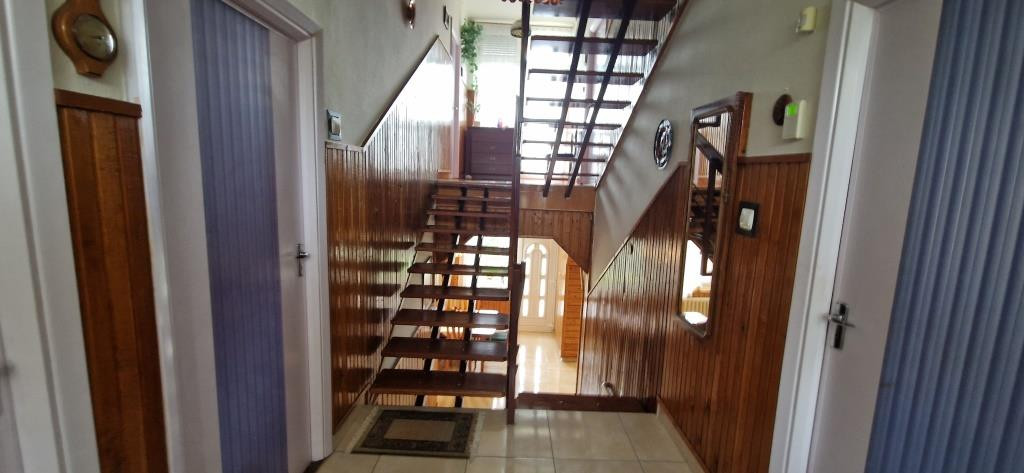 Kaposvár Tüskevári városrészében, a Könyves Kálmán utcában kínáljuk megvételre ezt a szinteltolással épült családi házat. Az utcáról az előtérbe lépünk, amitől jobbra a garázs található, balra egy kis gardrób, aztán a WC, majd a fürdő. Néhány lépcsőn lefelé a nappaliba, illetve az azzal egy légterű étkezős konyhába juthatunk. Innen nyílik egy kellemes és védett terasz hátra a kert felé, valamint a kazánház és a kamra. Ha az előtérből felfelé indulunk, ott két oldalt egy-egy szobát találunk a nappali és a konyha fölött, szemben pedig egy praktikus erkélyt a terasz fölött. Megfordulva és tovább haladva felfelé van még egy szoba és egy fürdő, és végül a legfelső szinten is kialakítottak plusz egy szobát. Így a tágas nappalin kívül van egy nagyobb szoba, valamint három hálószoba. A teljes lakóterület 92 m2. A ház kiváló állapotú, külső nyílászárói hőszigeteltek, műanyag keretesek. Fűtése gázkazánnal megy, és a nappali sarkában van egy cserépkályha is. A telek 789 m2-es, enyhén lejt, igazán szépen gondozott, parkosított, karbantartott. Mind a kert, mind a ház jó hangulatú, barátságos.