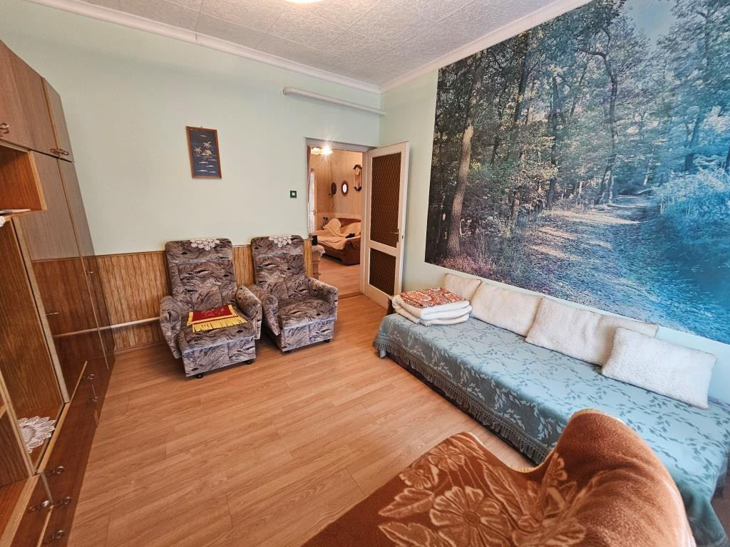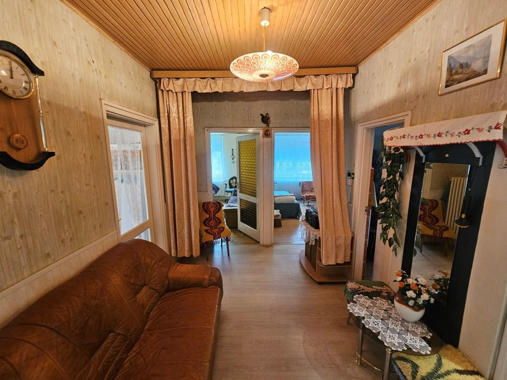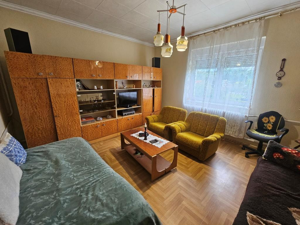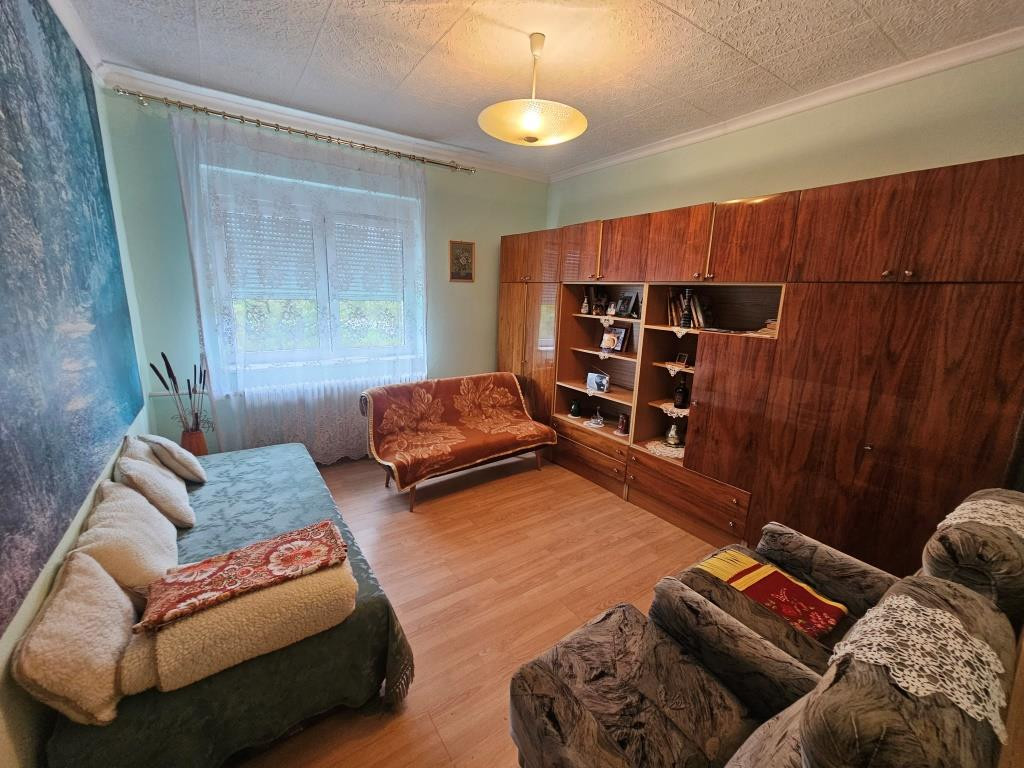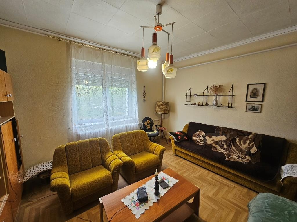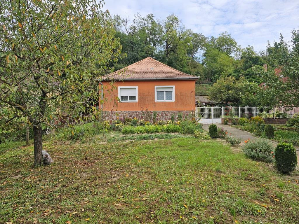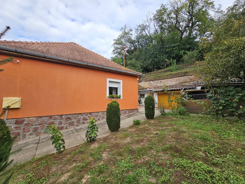 Kaposváron, a Nyugativánfa utcában kínáljuk megvételre ezt a kétszoba hallos, jó állapotú családi házat. Lakóterülete 63 m2, amihez még hozzáadódik a kazánház és a teraszból leválasztott előtér. Ezen kívül több, tárolóként, műhelyként használható melléképület, pince és garázs áll rendelkezésre. A ház bejárata hátul, a teraszról vezet be az előtéren keresztül a hallba. Innen nyílik szemben egymás mellett a két tágas szoba, balra az étkezős konyha, jobbra a fürdő, és egy kis közlekedő a padlásfeljáróval, majd a WC. Központi fűtés van, ami kétféle módon is működtethető: vegyes tüzelésű kazánnal, vagy gázkazánnal. Külső szigetelést is kapott a ház, és az ablakok zöme új, műanyag keretes. Nem szokványos, hogy a ház az utcafronttól bőven beljebb épült, ezért a telek nagyobb része a ház előtt helyezkedik el. Ez a terület egészen enyhén emelkedik a ház felé, igazán szépen gondozott. Találunk itt gyümölcsfákat és füves, virágos részeket. A ház mögött viszont meredekebb, teraszos kialakítású a terep. Lent, az utcához közel egy árok is keresztülfolyik a területen. A telek 1476 m2. A környék nyugodt, családi házas övezet, a ház és a kert hangulatos, barátságos.