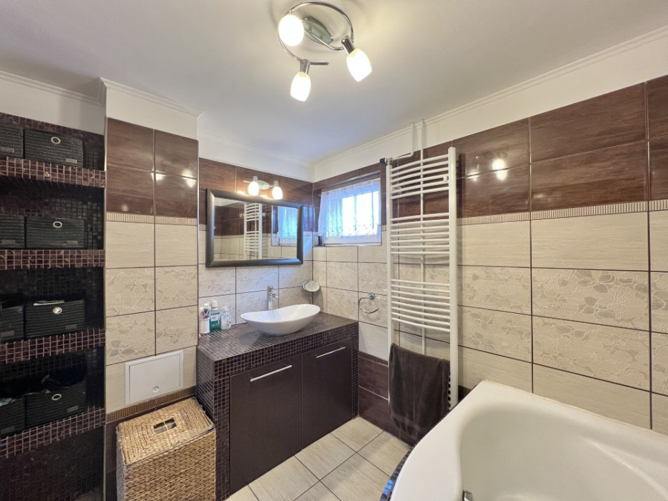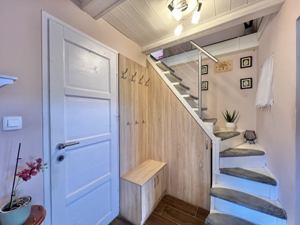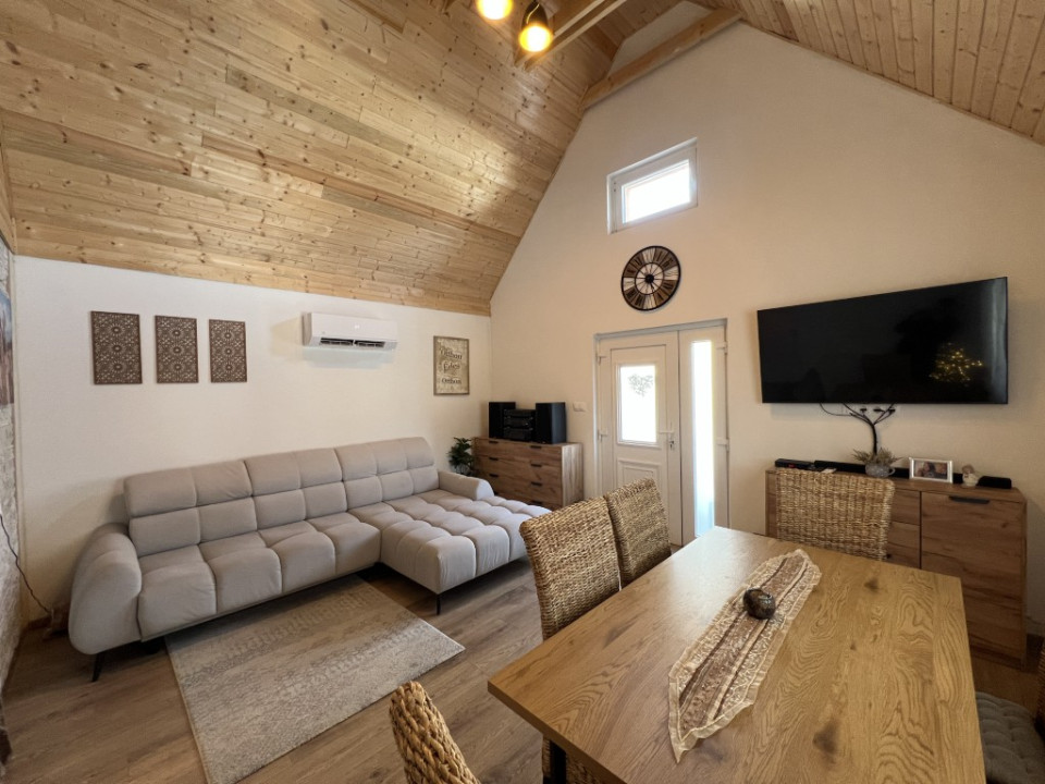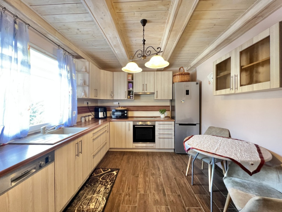 Kaposváron a Zselic kertváros egyik csendes kis utcájában található, aszfaltos úton megközelíthető kedves hangulatú, otthonosan kialakított lakóházként használt hétvégi ház eladó. Az épület alsó szintjén nappali-étkező, konyha, fürdőszoba-wc helyiség található, míg a padlástérben további 2 szobát alakított ki a tulajdonosa. Az épület - ahogyan a képeken is látható - nagyon jó műszaki állapotban van, a nyílászárók műanyagok, az épület kívülről 10 cm. hőszigetelést kapott, a fűtése vegyes központi fűtéssel megoldott, a nappaliban és a két felső szobában 1-1 légkondicionáló van felszerelve a komfort növelése miatt, illetve a meleg vizet intelligens Ariston villanybojler biztosítja, illetve kamerarendszer van kiépítve. A kazánház mellett mosókonyha, és további műhely is található. A ház alatt 8 m2-es pince található, az önálló kerti lakrész klímával fűthető és egy szauna is megtalálható mellette. Az igényesen kialakított udvarban 2 személyautó részére fedett beálló van. Telek: 772