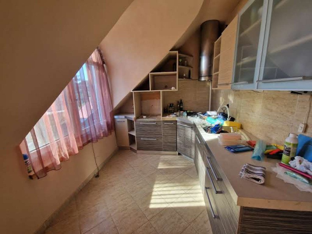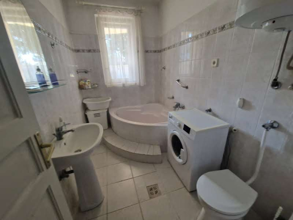Kaposvár északnyugati városrészében, a Vörösmarty utcában kínáljuk megvételre ezt a családi házat, melynek földszintjén egy 100 m2-es, az emeletén pedig egy 110 m2-es lakrész lett kialakítva. Mindkét lakás teljesen önállóan, egymástól függetlenül használható, külön bejárattal rendelkeznek. Az alsó lakás két és félszobás, étkezős konyhájához kamra is tartozik. A fürdő sarokkádas, a WC bent van. Terasz is ki lett alakítva, ez szerves része mind a beltérnek, mind a kültérnek. Az emeleti lakás tágas nappalija helyet ad az étkezőnek is, egylégterű a konyhával, és innen lehet kimenni a szintén kellemes, praktikus teraszra. Van még két egész és egy félszoba, a fürdő ugyancsak sarokkáddal, a külön kialakított WC, ami egyben mosókonyhaként is funkcionál, valamint a közlekedő a beépített szekrényekkel. A ház szigetelt, fűtése a földszinten konvektoros, itt meleg vizet villanybojler szolgáltat, míg az emeleten kombi gázkazán oldja meg a fűtést és a meleg vízellátást. A gáz- és a villanyóra szintenként külön van, vízóra egyben, de szükség esetén almérő felszerelhető. A házon az elmúlt években több felújítás is történt, a tetőcsere 5 éve zajlott, az emeleten 8 éve újult meg a konyha és a nappali, míg a földszinten 12 éve munkálkodtak. Van melléképület tárolókkal, és a ház egy része alatt pince húzódik. A telek 400 m2-es, a kert parkosított, szépen gondozott. A környék rendezett, nyugodt, csendes. Kiváló lehetőség két generáció számára, de akár egyben is használható, vagy egyik része kiadható.